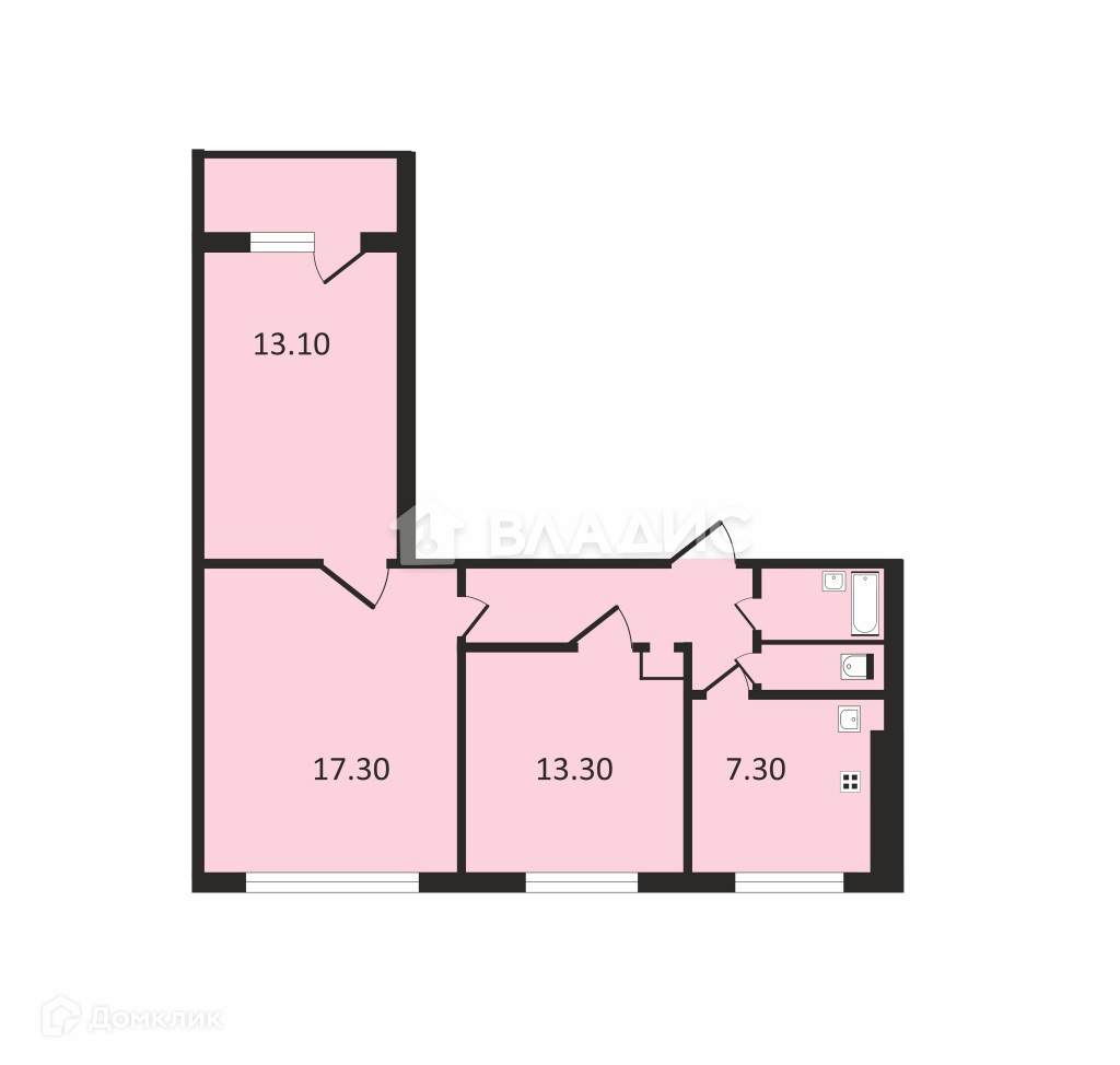 Общая площадь 61.9 м2