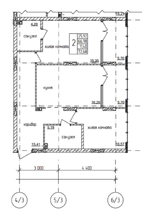 Общая площадь 72.7 м2
