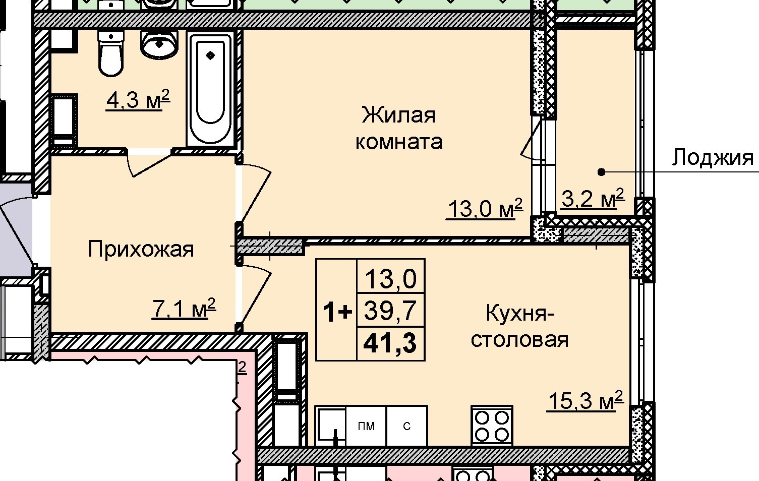 Общая площадь 41 м2