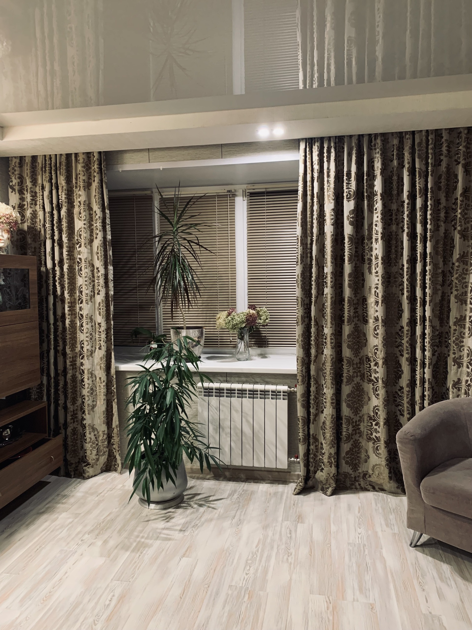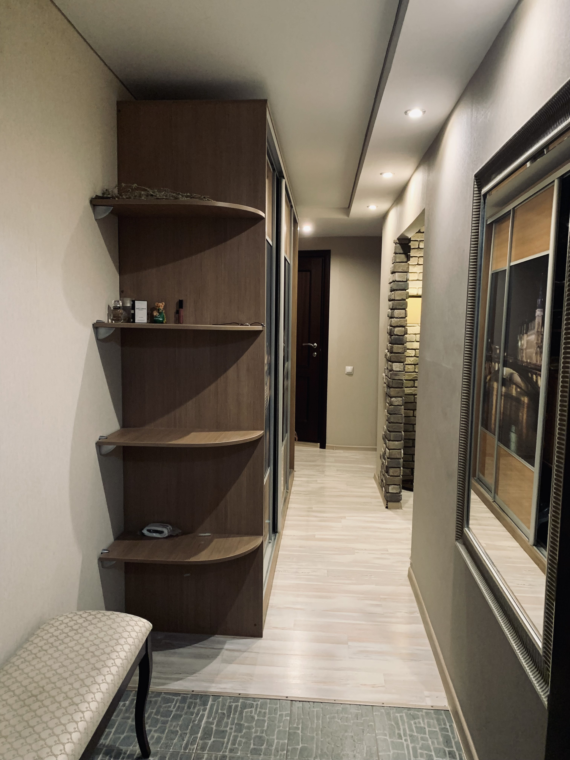 Благодаря широким стенам, подоконнки мечта любой хозяйки. Окна все пластиковые, лоджия застеклена и общита вагонкой, есть ящик для хранения. Санузел совместили, стал больше и комфортнее. Потолки натяжные везде, на полу ламинат+гранит в кухне и частично корридор. Встроенные шкафы в двух комнатах и корридоре.