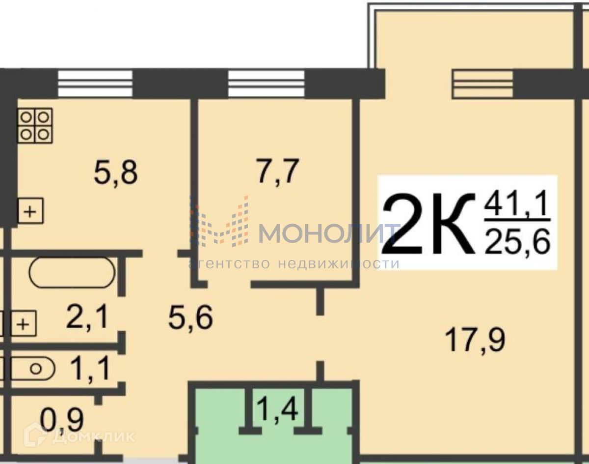 Общая площадь 41.7 кв.м.