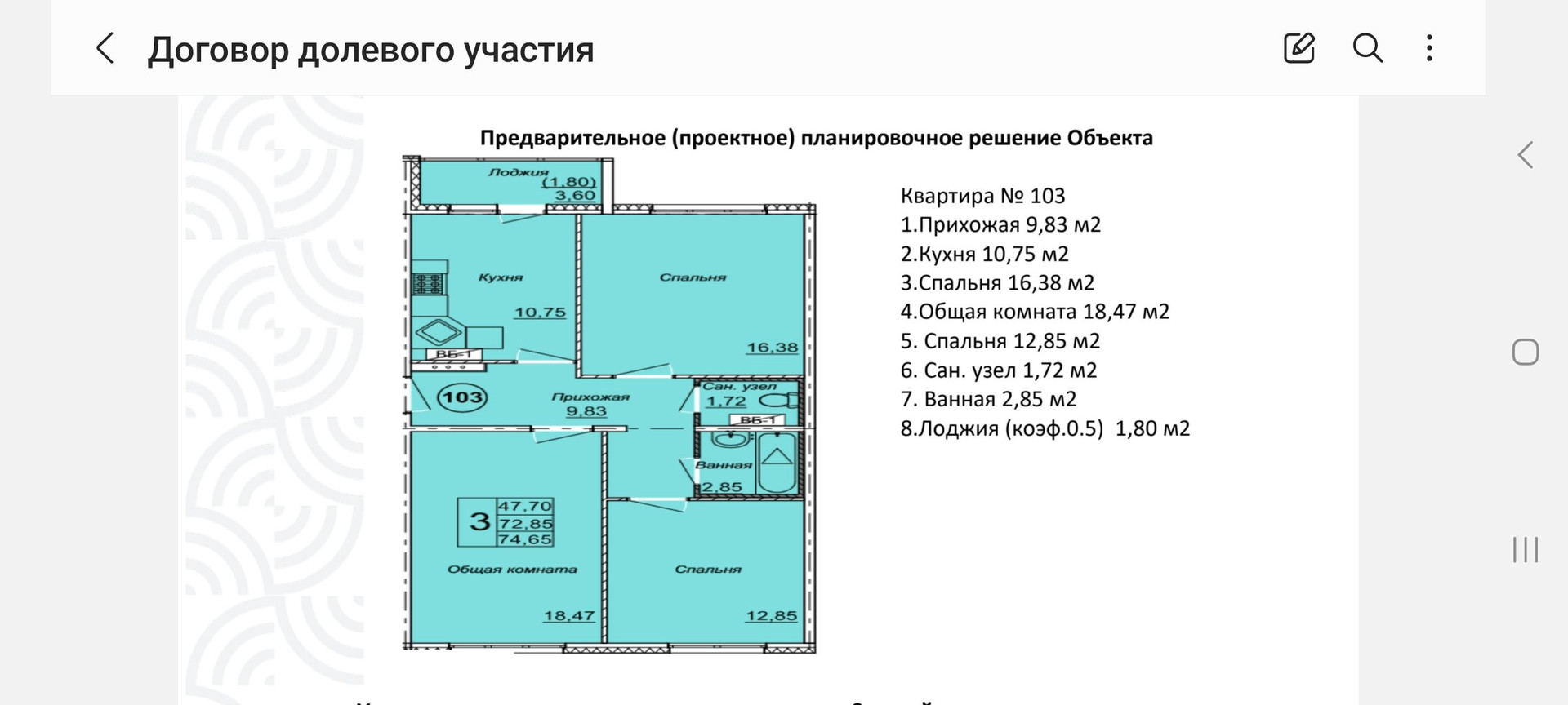 Общая площадь 72.8 м2