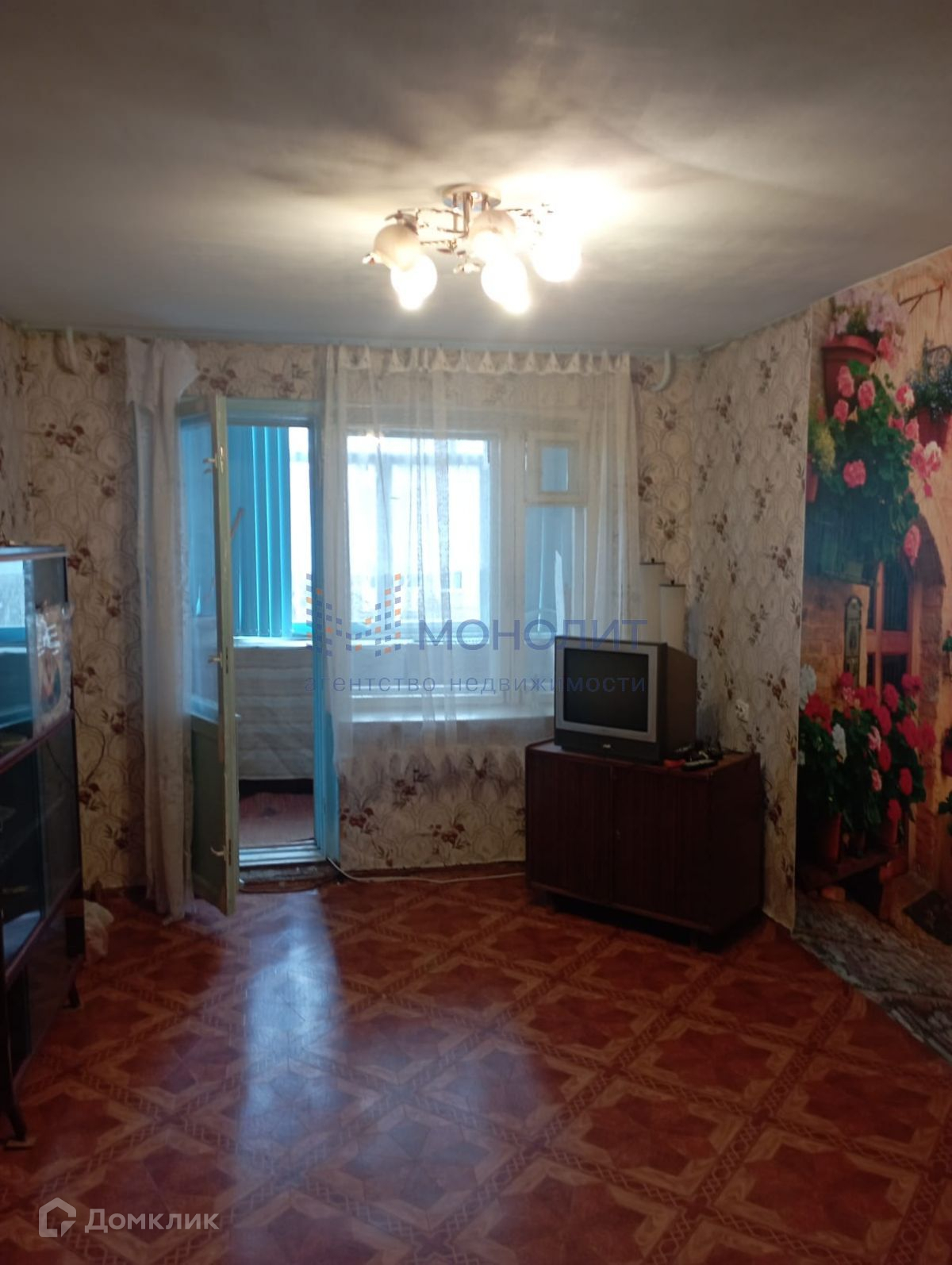 Общая площадь квартиры 43.3 кв.м. Окна выходят во двор. Большая лоджия.