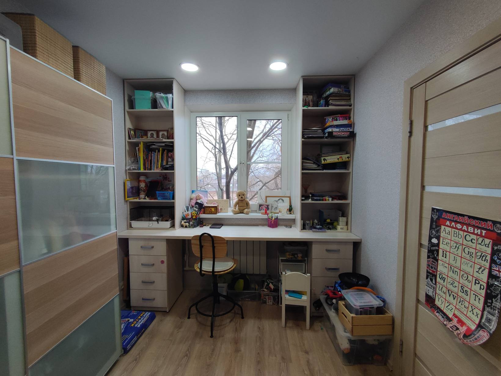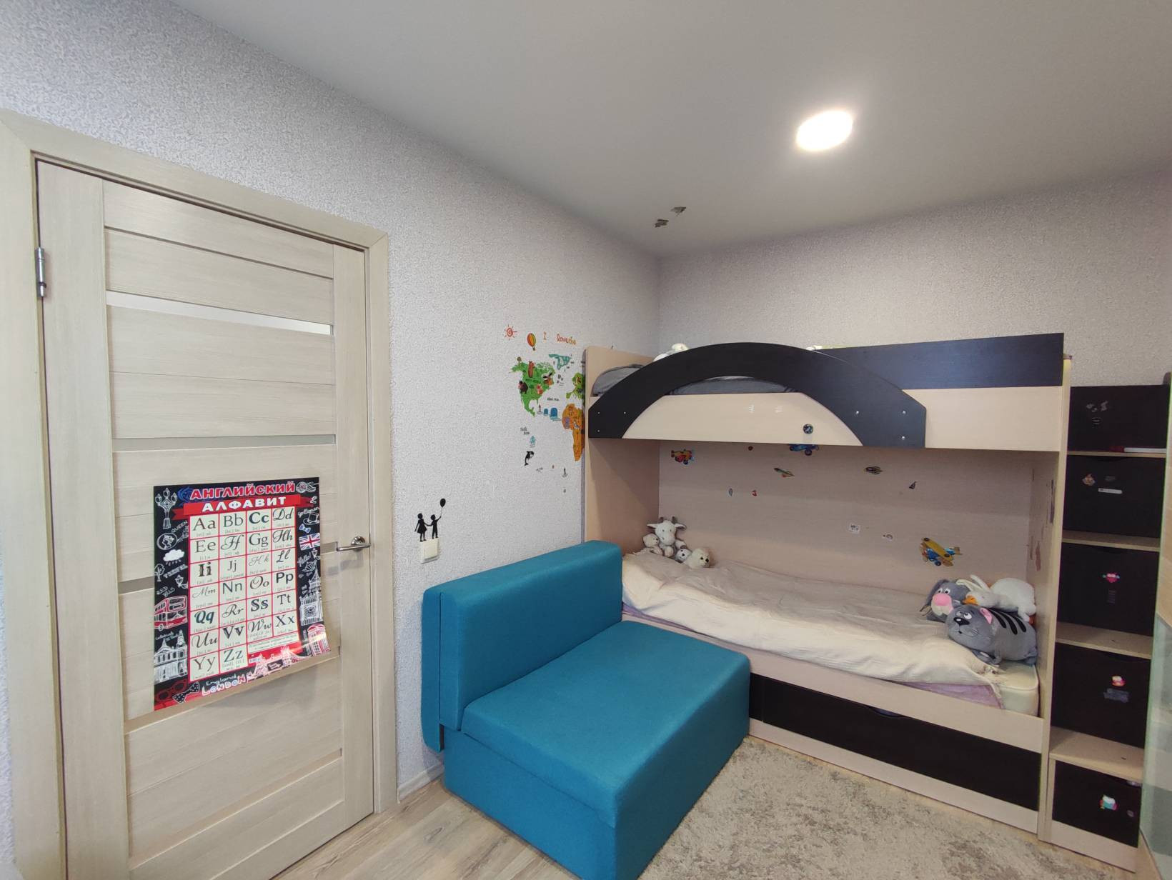 По желанию, без увеличения цены в квартире может остаться — кухонный гарнитур, мебель в ванной, шкаф-купе в гостиной, стенка в детской у окна, система хранения в кладовой.