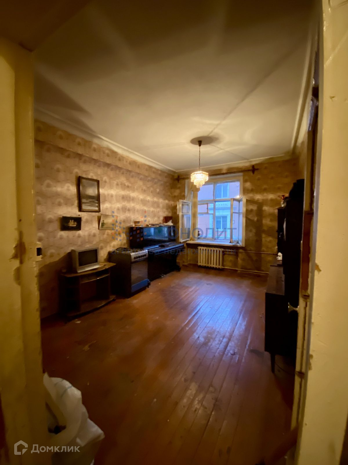 Квартира требует ремонта. Высокие потолки.