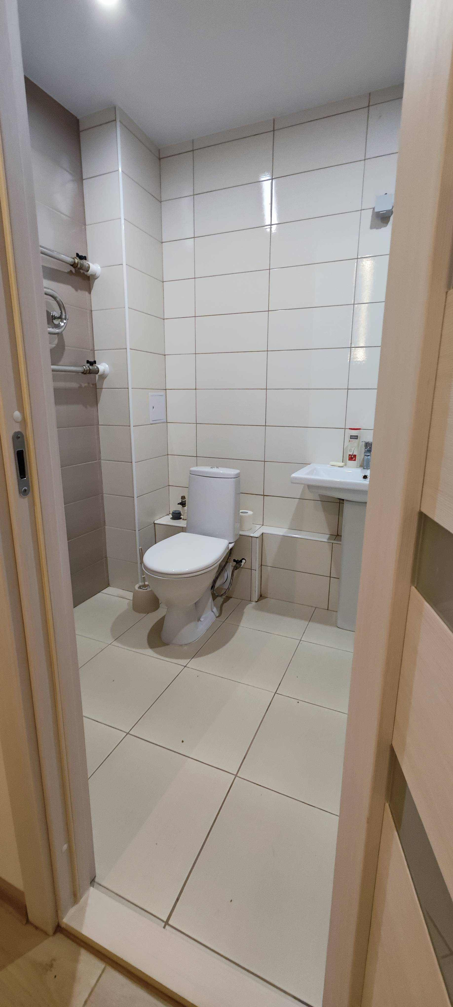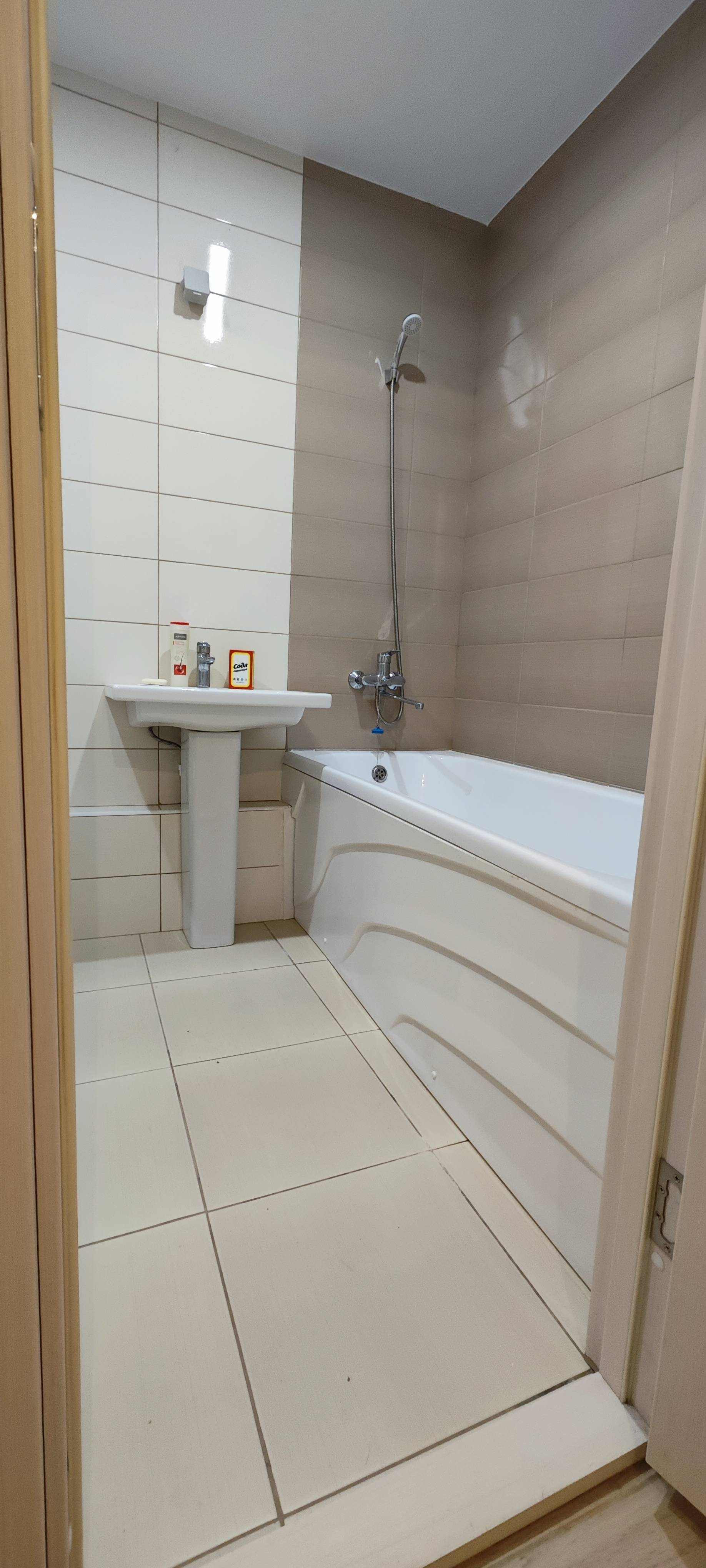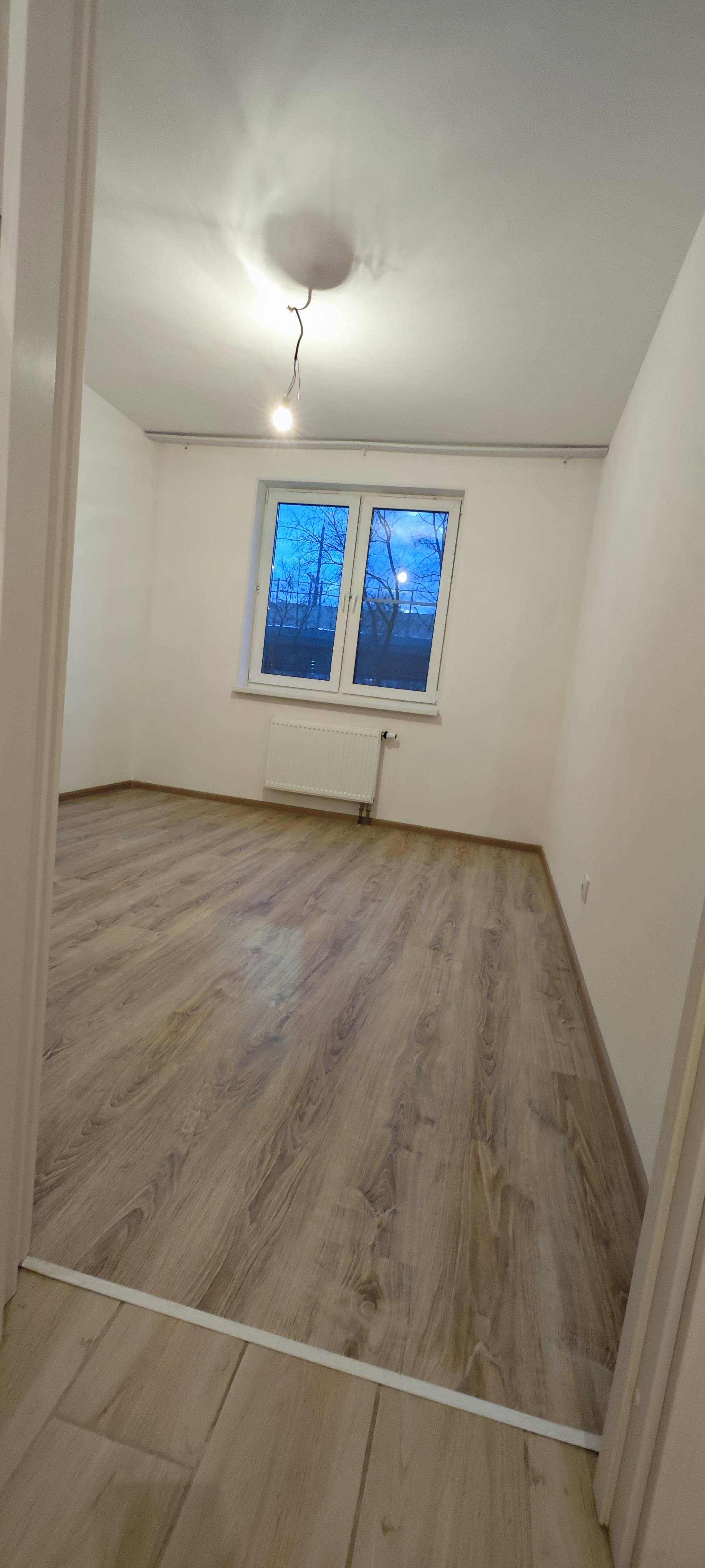 Отделка от застройщика: натяжные потолки, ламинат в комнате , керамогранит на кухне, в прихожей и на балконе.
