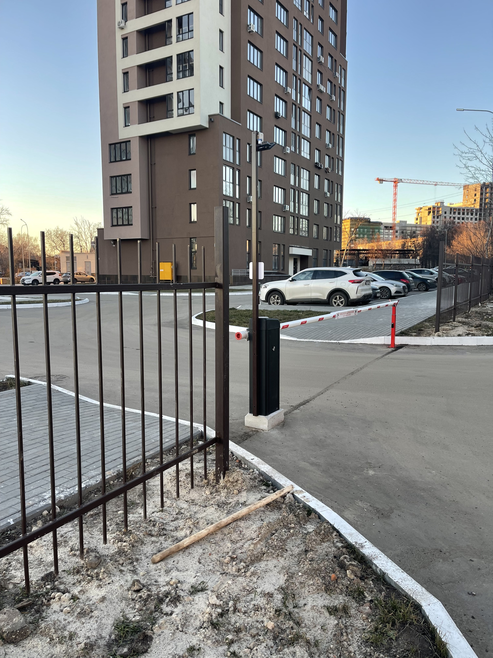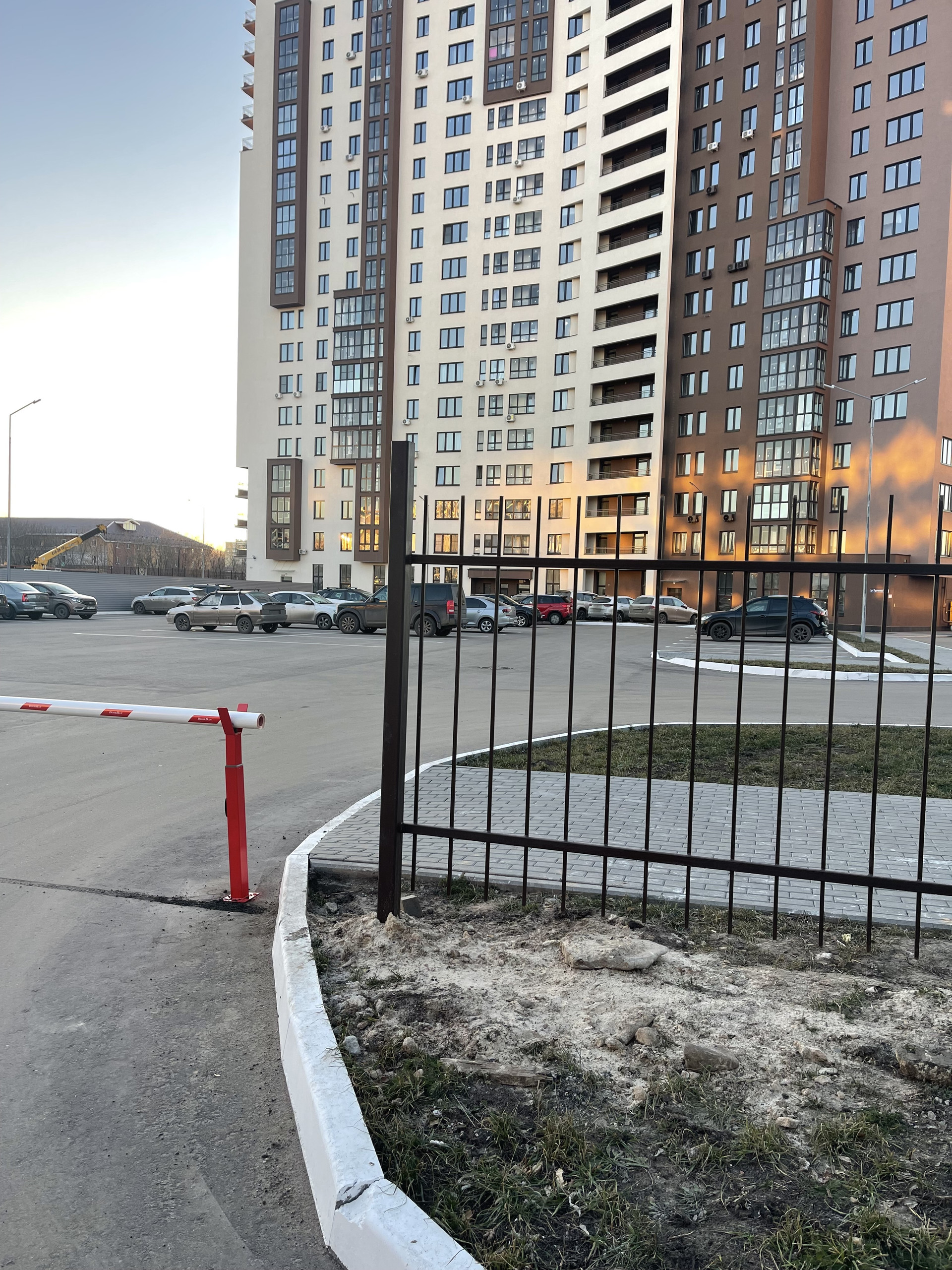 - Территория ЖК по периметру огорожена забором, установлены шлагбаумы;