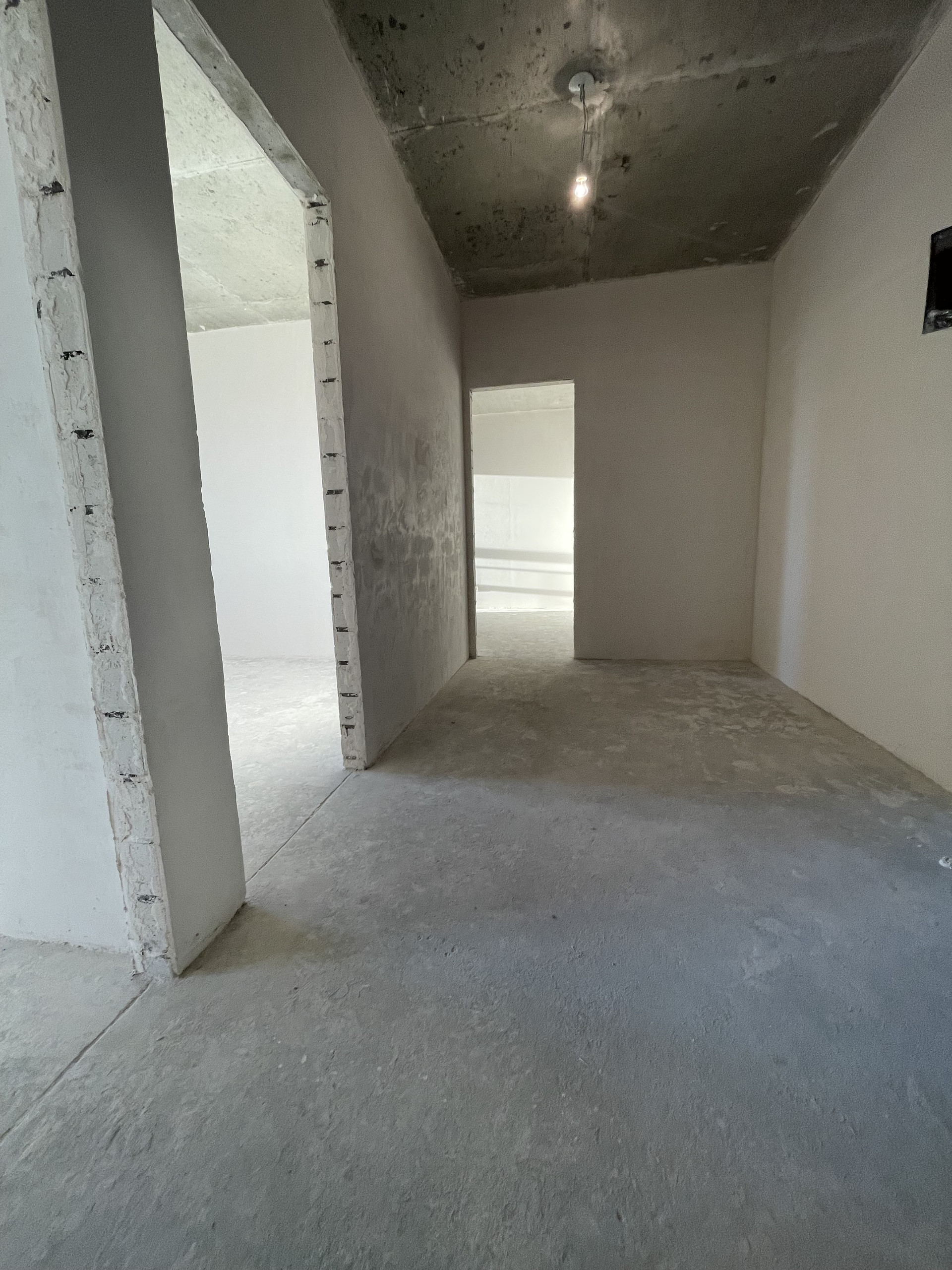 - Выполнены качественные предчистовые работы: потолок - затирка, стены - штукатурка по кирпичной кладке, затирка по бетону и газосиликатным блокам, пол - цементная стяжка, санузел - гидроизоляция, обмазочная пароизоляция стен мастикой, электрика разведена по квартире, установлены розетки и выключатели.