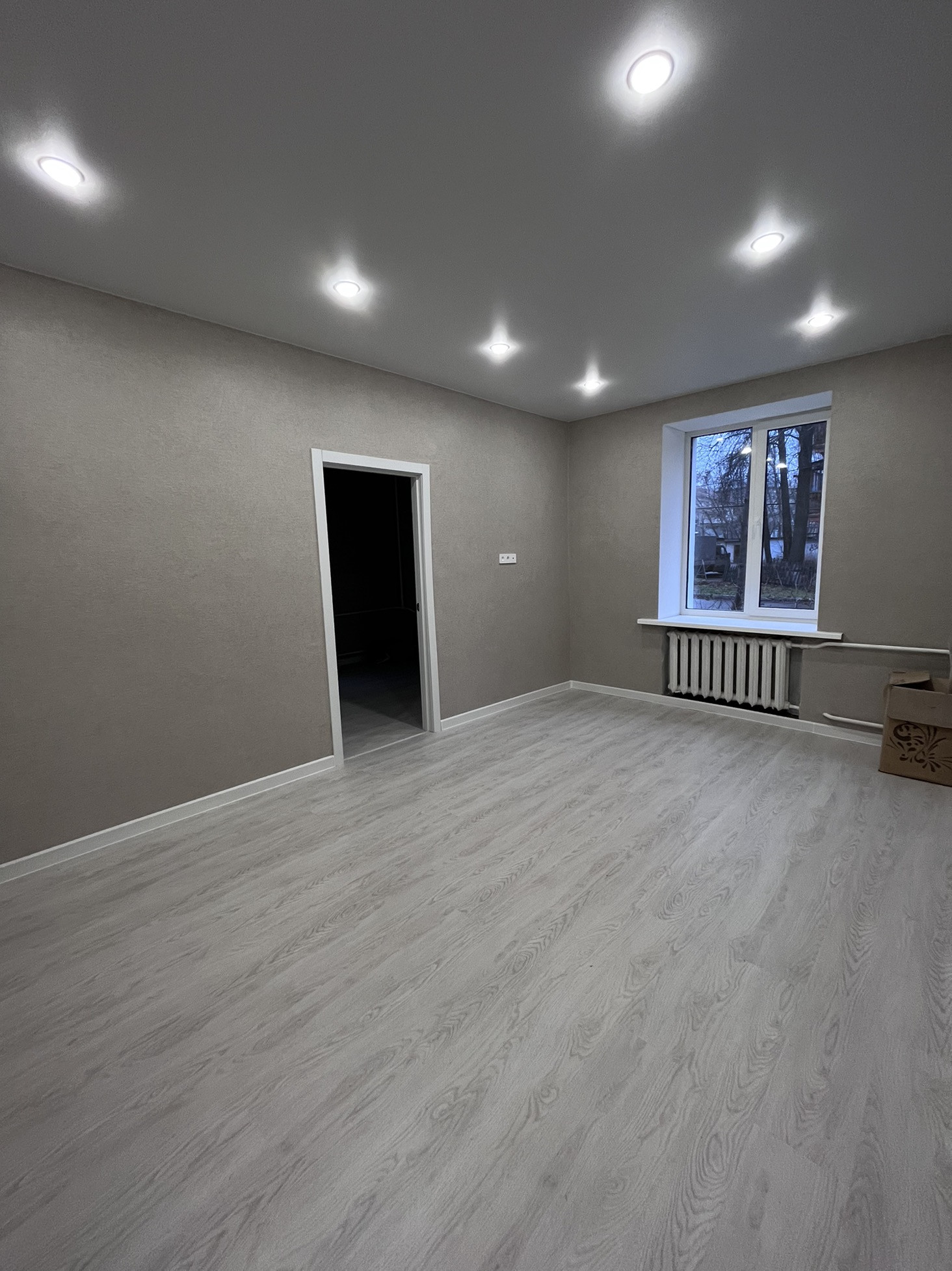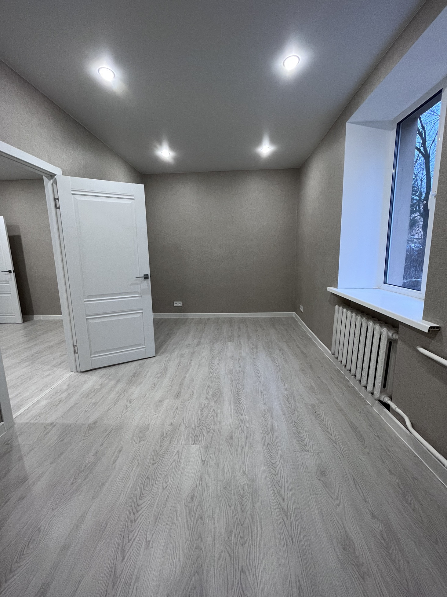 Ремонт свежий, выполнен в классических тонах, вам остаётся только поставить мебель и жить в удовольствие.