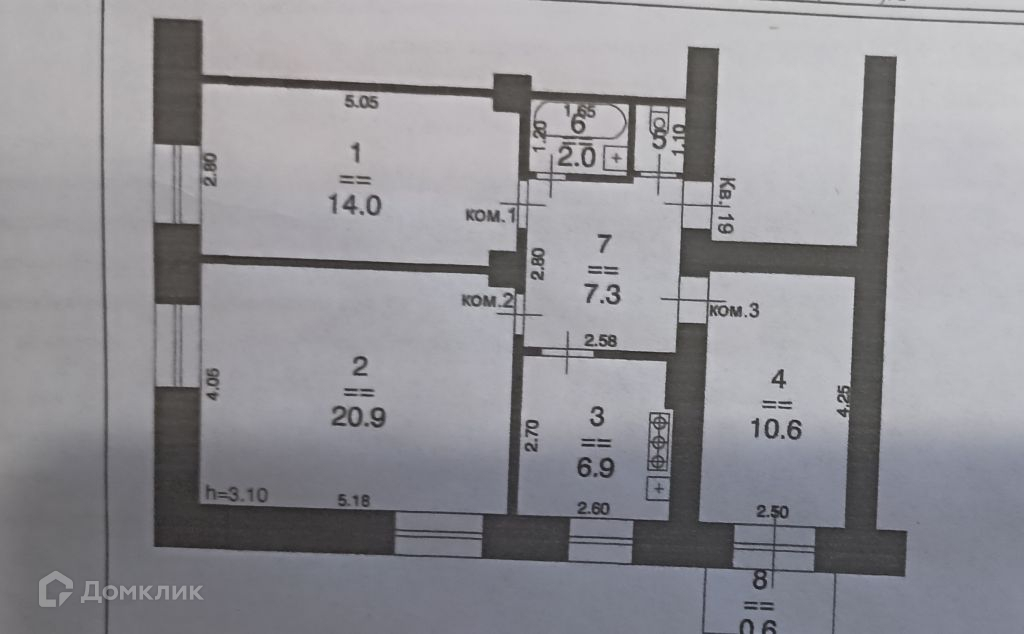 Общая площадь 62.6 м2