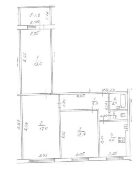 Площадь кухни 7 м2