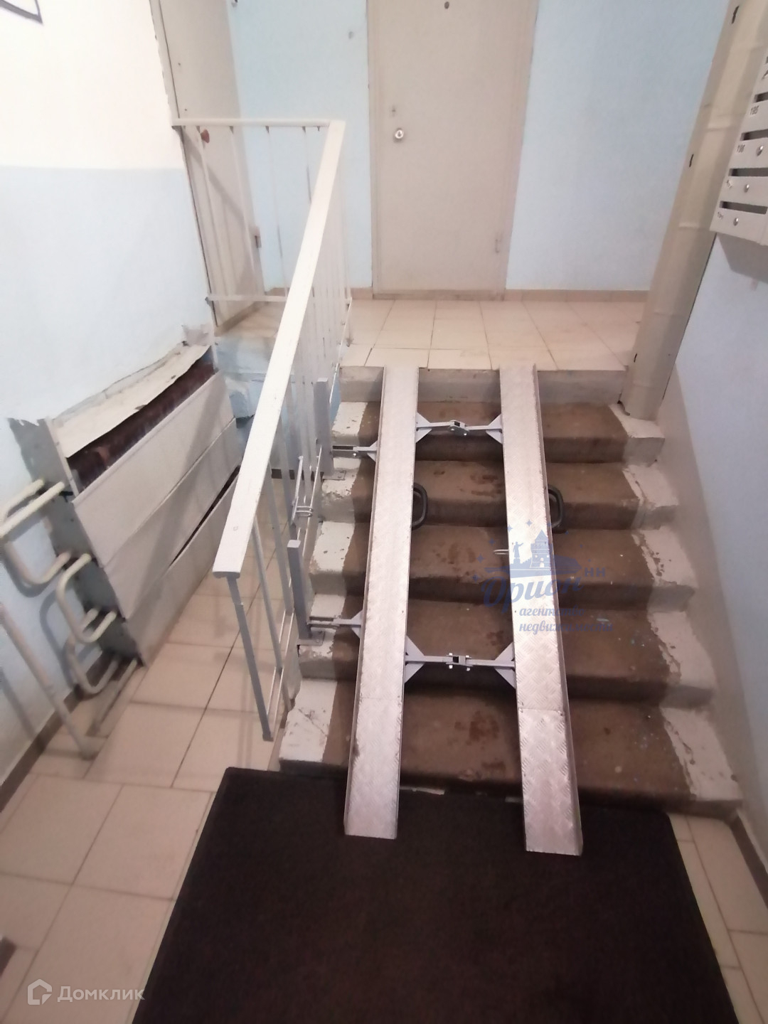 Большая застекленная лоджия; тамбур на две квартиры.