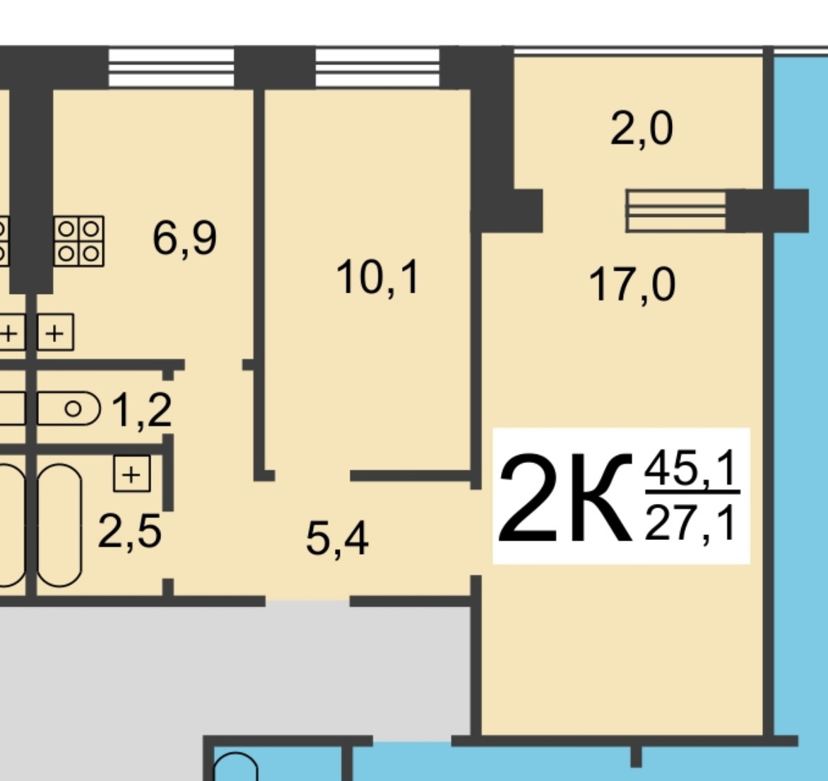 Площадь: 45,1 м2.