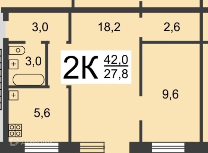 Жилая площадь 26 м2