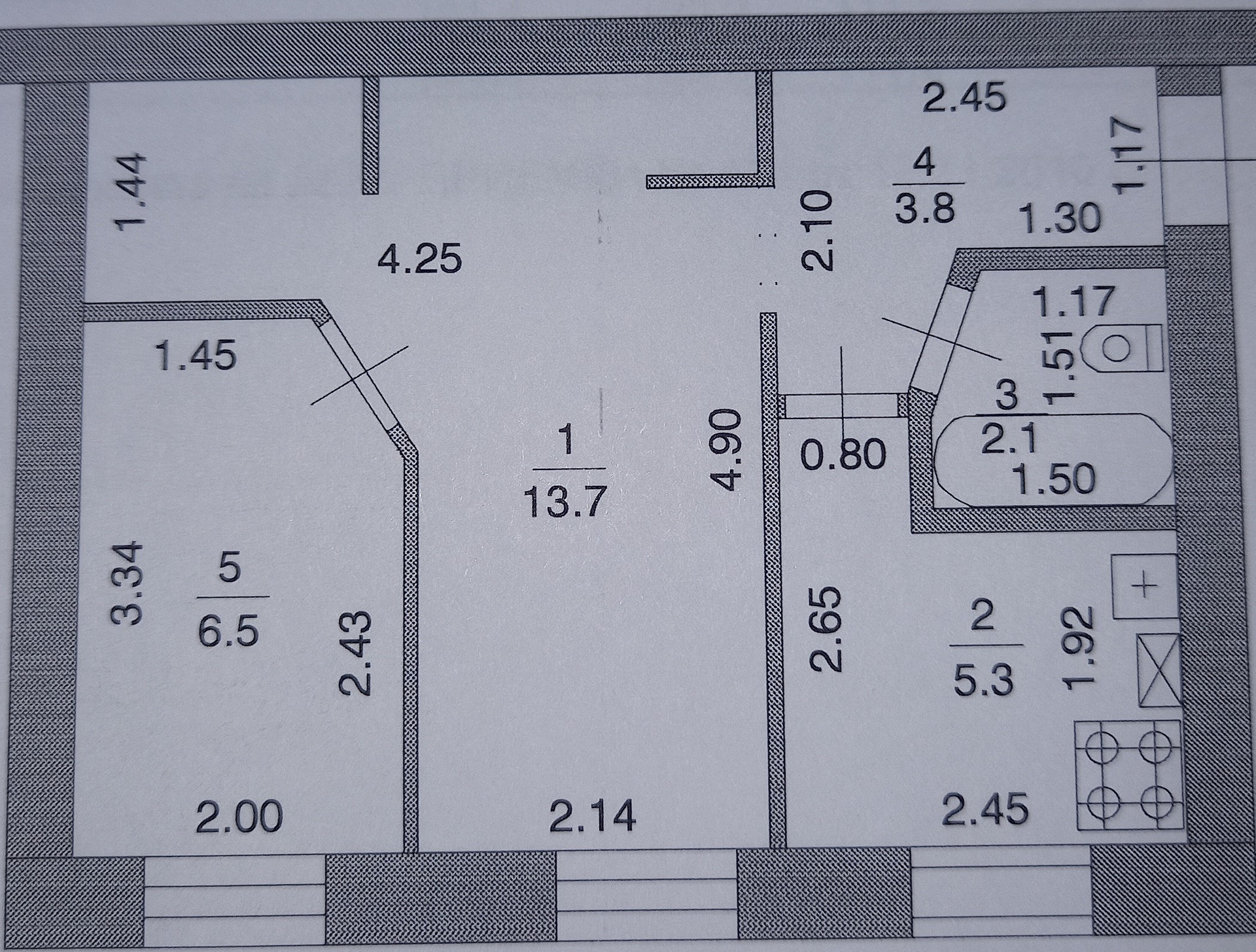 Площадь кухни 5.3 м2