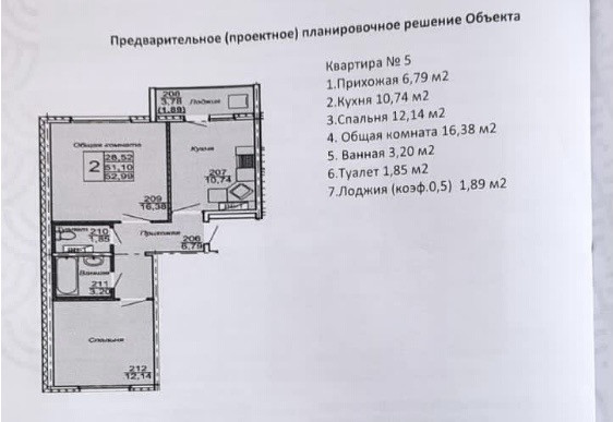 Общая площадь 54.9 м2