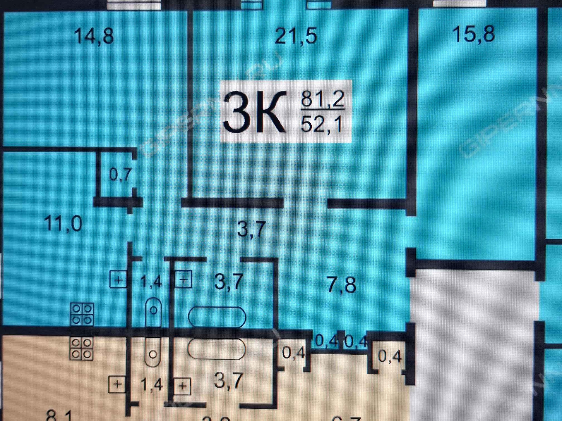 Общая площадь 81.2 м2