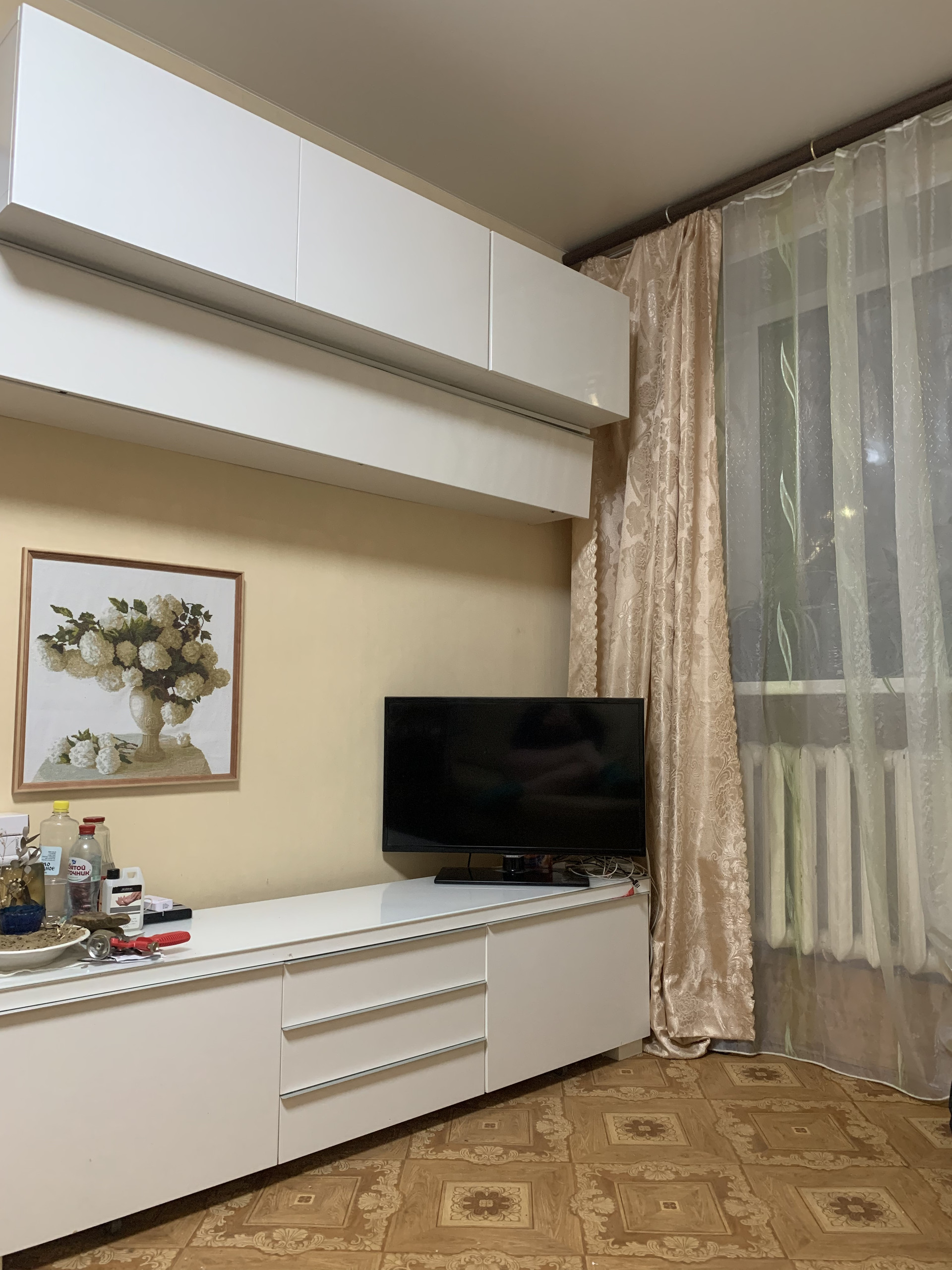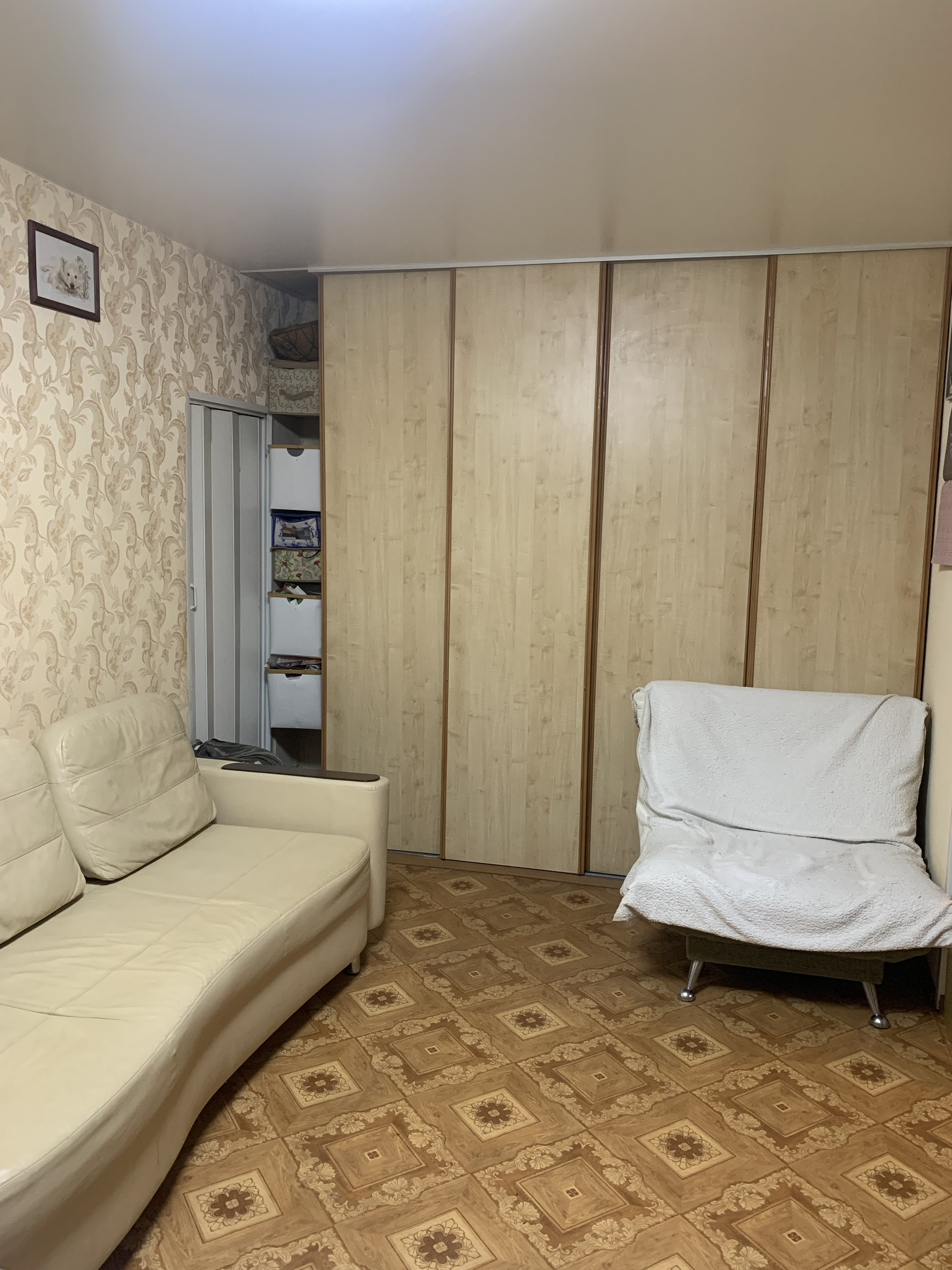 Остаётся кухонный гарнитур, шкаф для вещей.