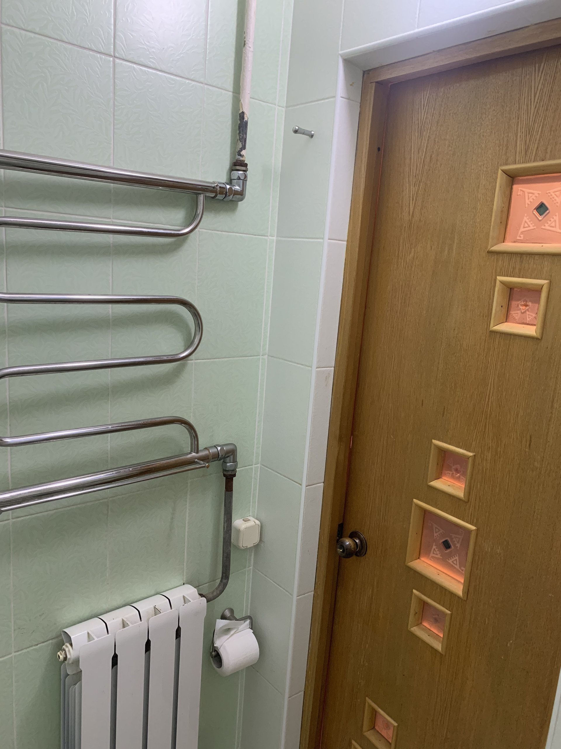 В ванной новый полотенцесушитель и батарея. Установлена акриловая ванна с пластиковой шторкой. Плитка в хорошем состоянии.