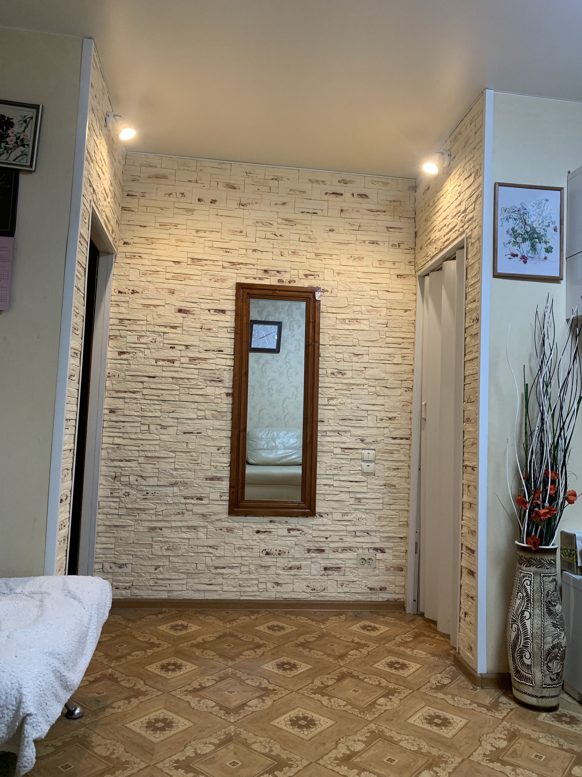 Натяжные потолки на кухне, в прихожей и комнате.