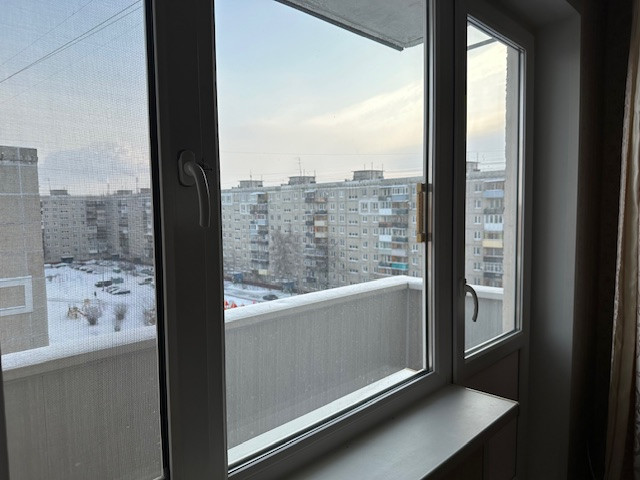 Из детской комнаты выходит оборудованная , застекленная лоджия.