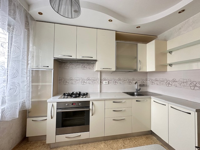 - квартире остаётся   , функциональный , кухонный гарнитур со встроенной техникой(духовой шкаф, варочная панель, вытяжка)