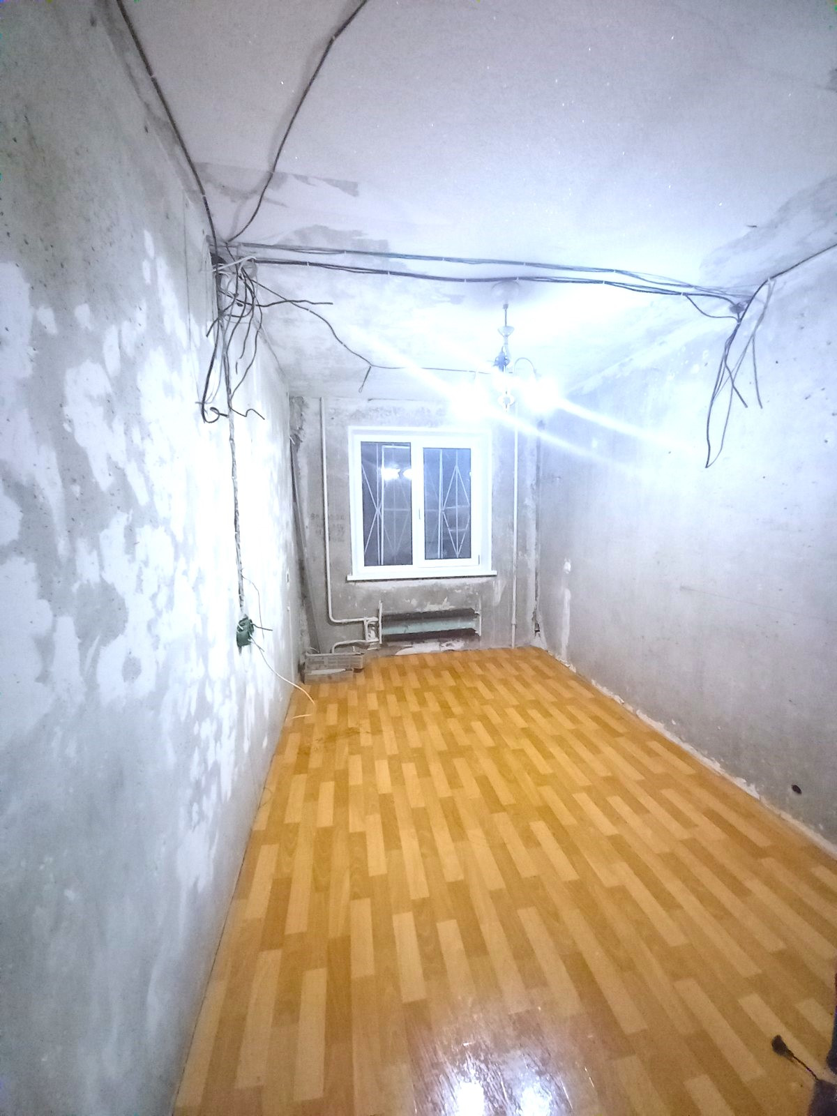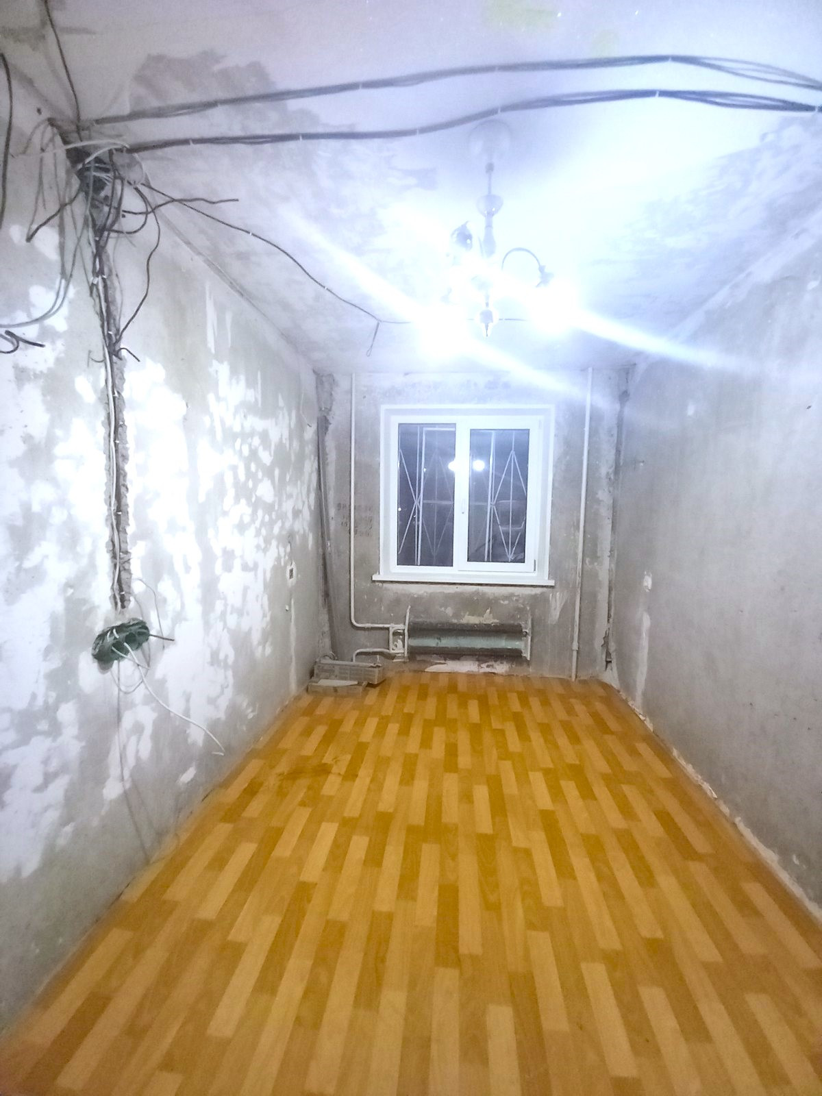 Начата подготовка к ремонту, в одной комнате сделана разводка под электрику.