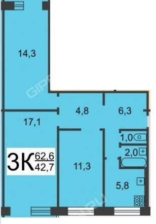 Общая площадь 62.6 м2