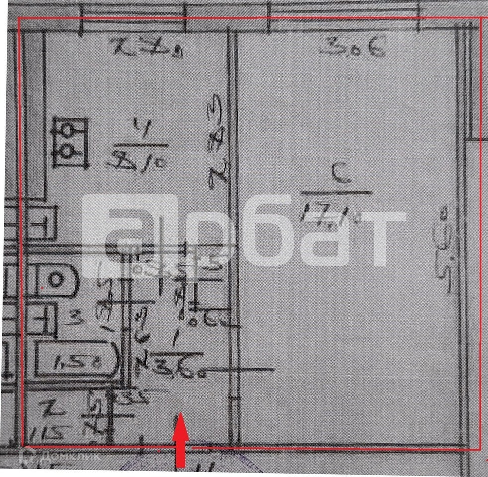 Жилая площадь 17.1 м2