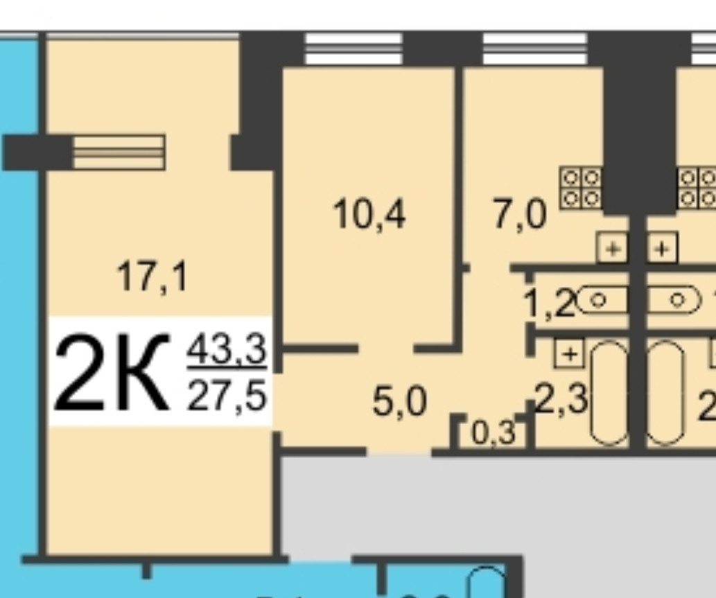 Общая площадь 43 м2