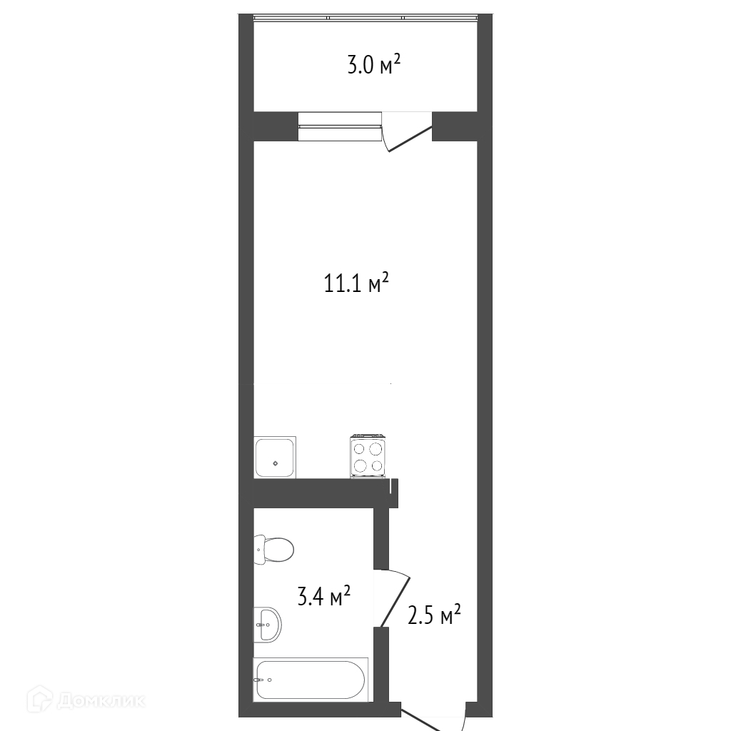 Площадь кухни 3 м2