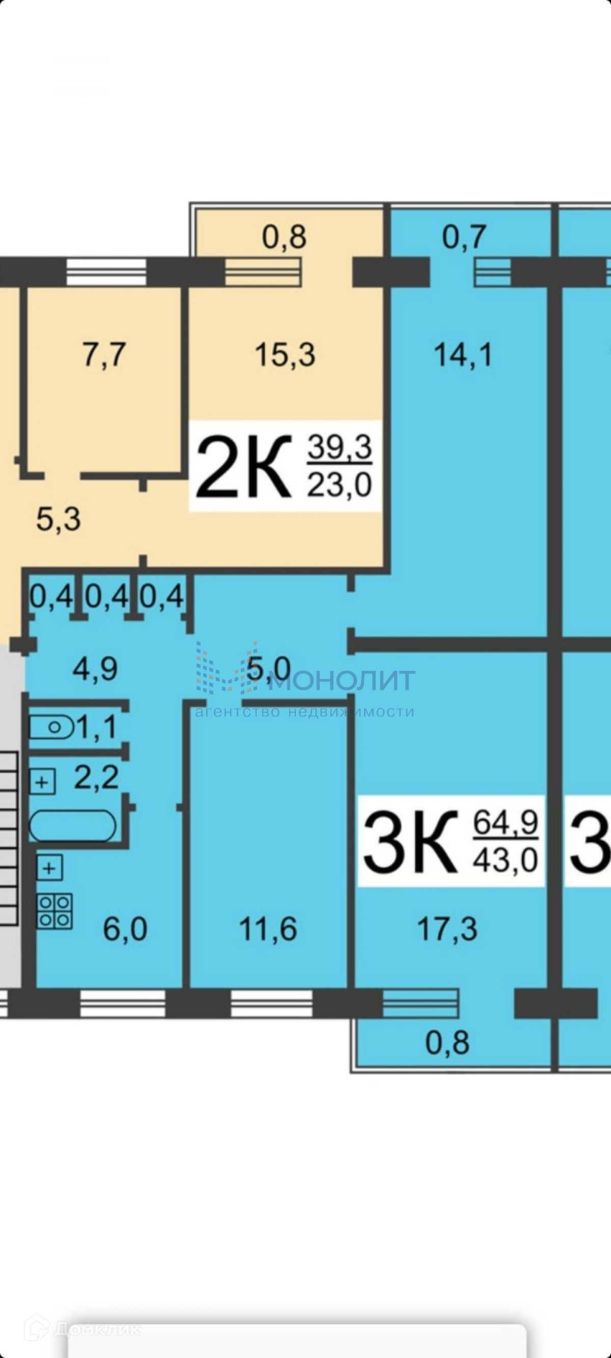 Общая площадь 64.9 м2