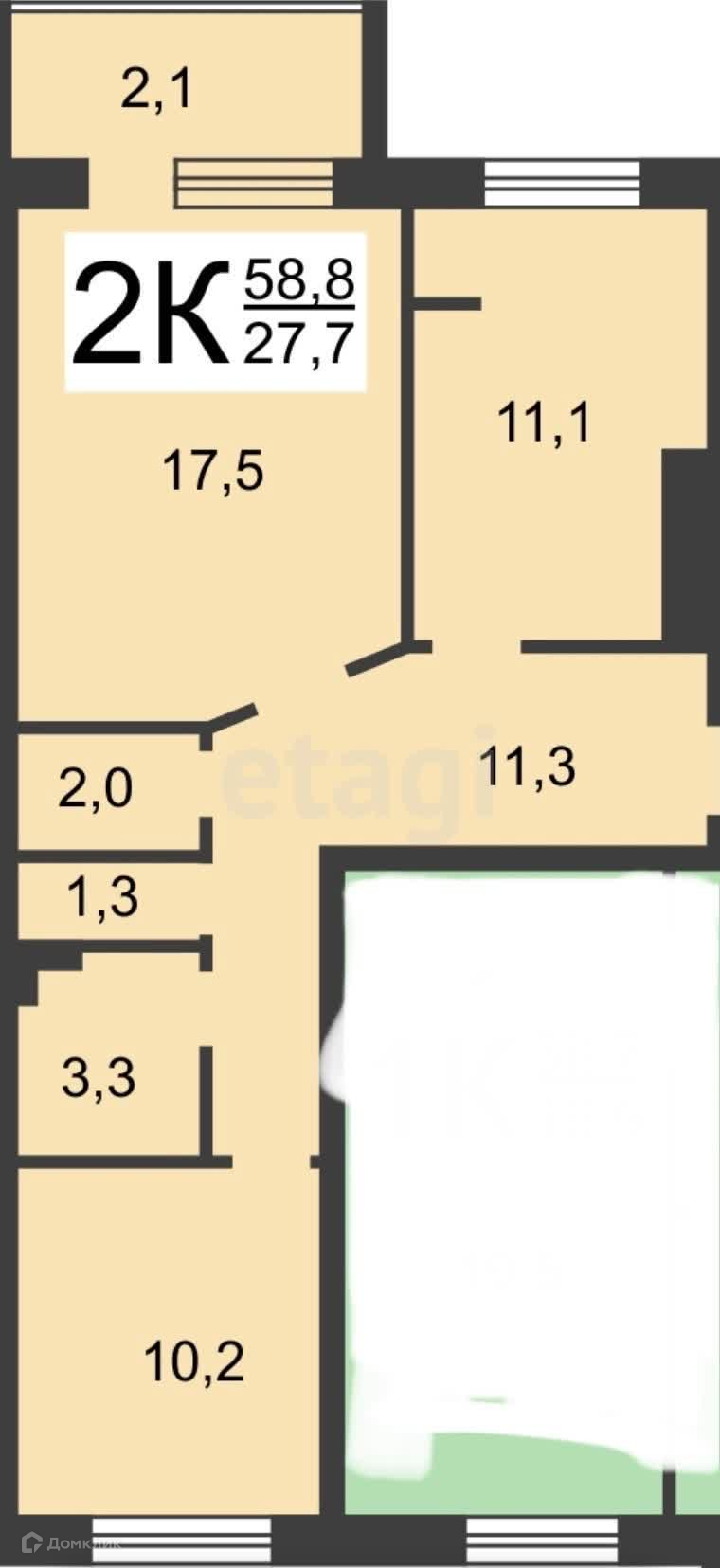 Общая площадь 60.1 м2
