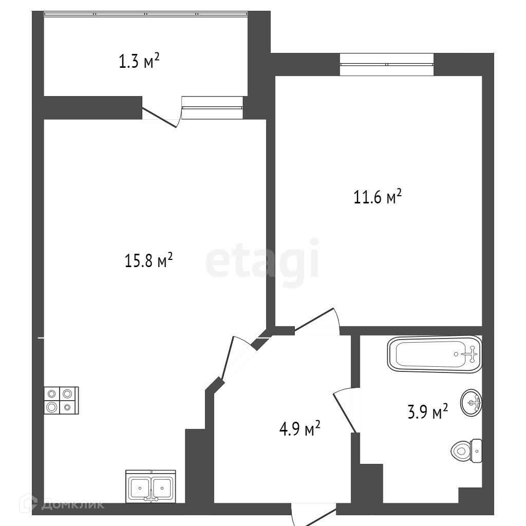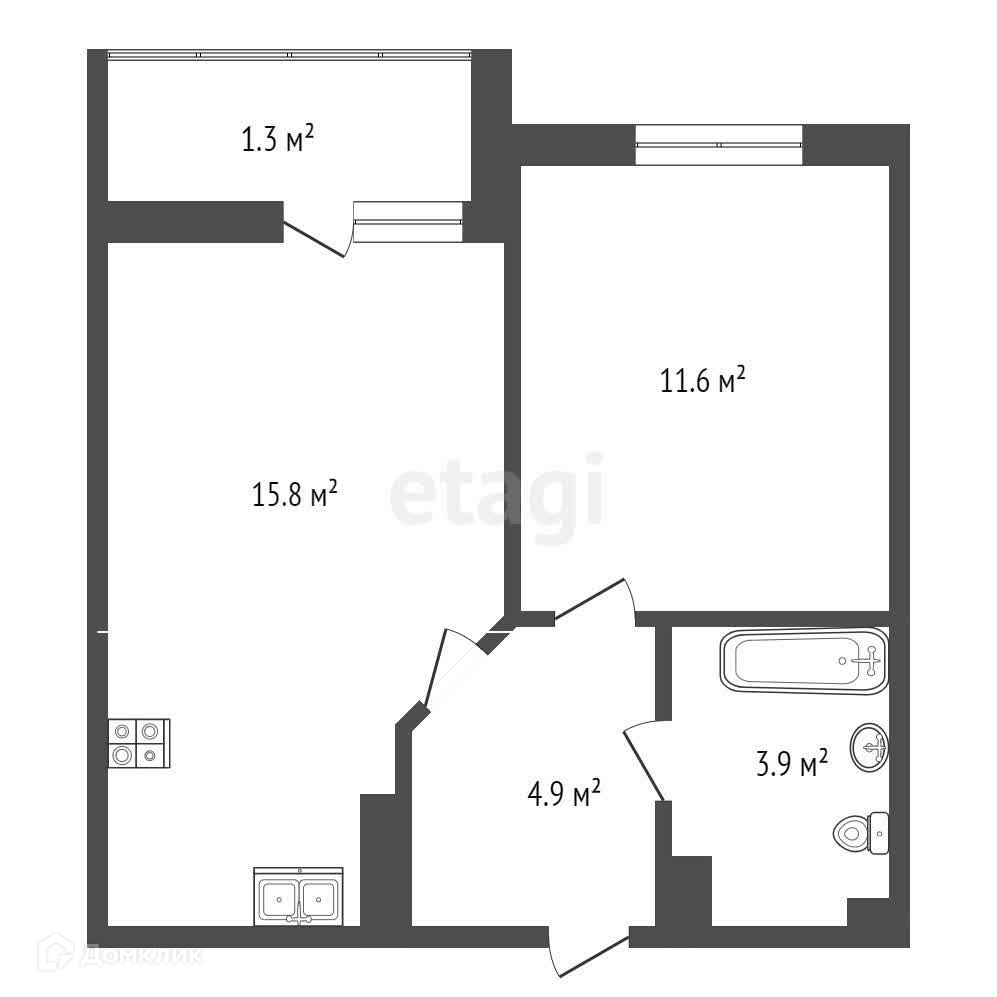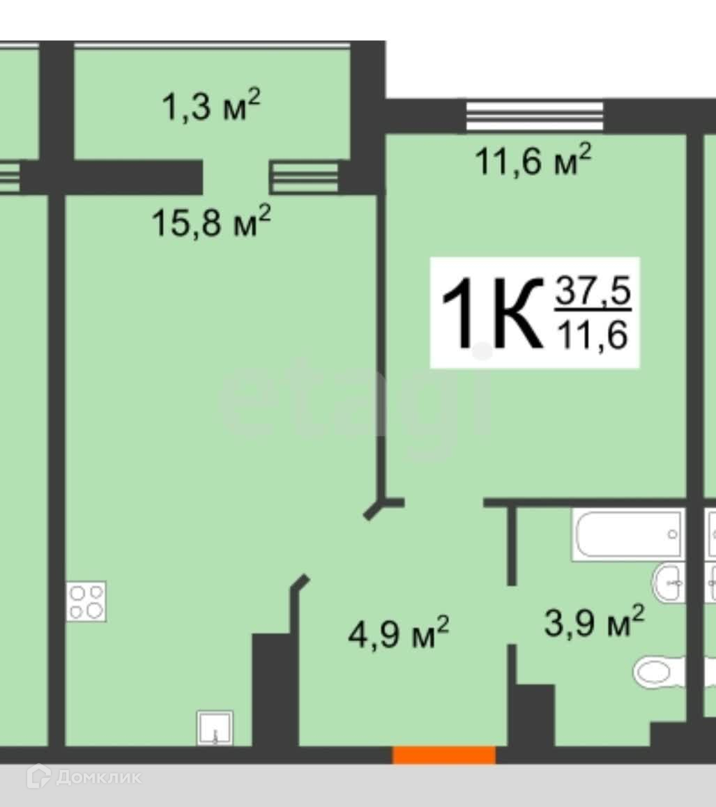 Общая площадь 34.6 м2