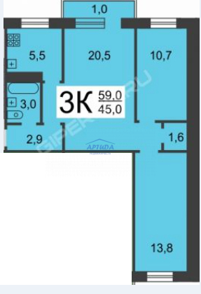 Общая площадь 60 м2