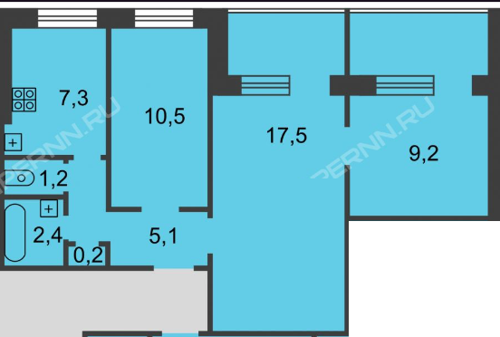 Oбщая площадь 66 м2, без учета лоджий 58 м2.