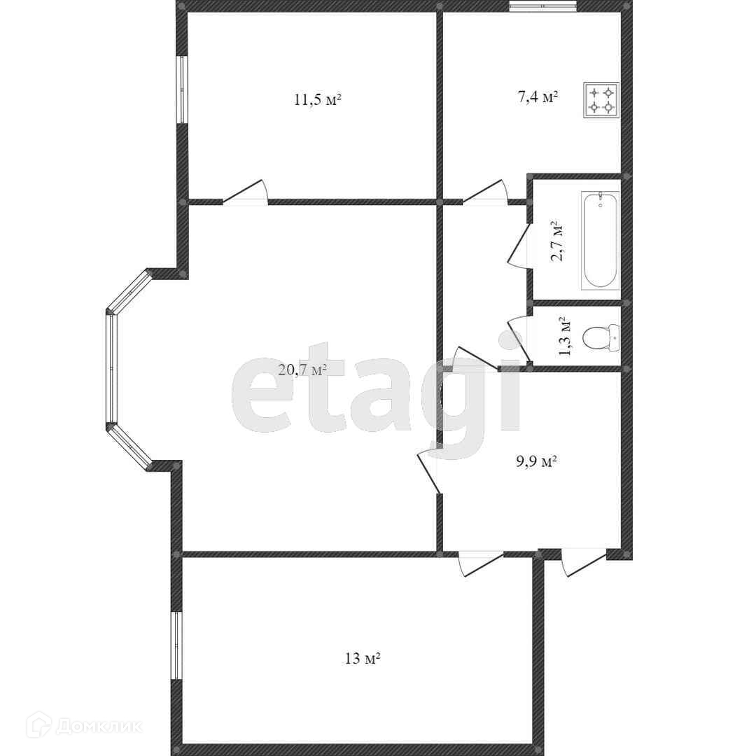Общая площадь 64.3 м2