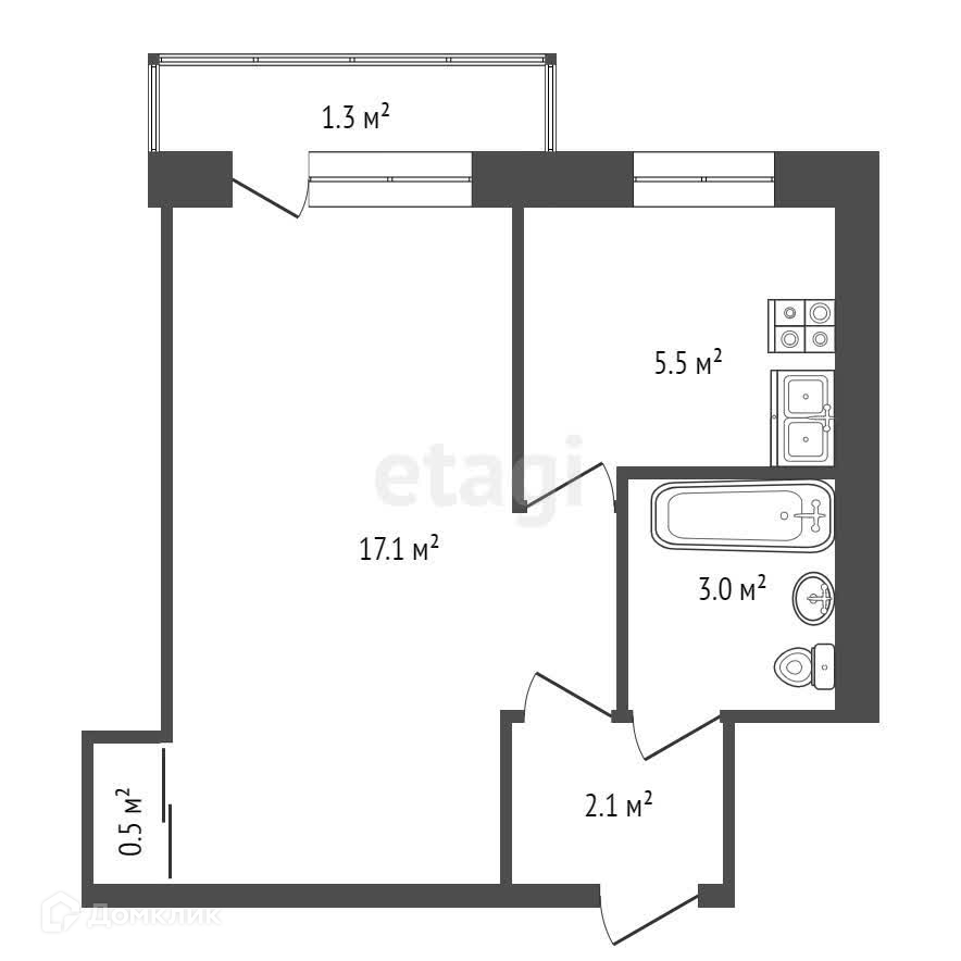 Общая площадь 29.5 м2
