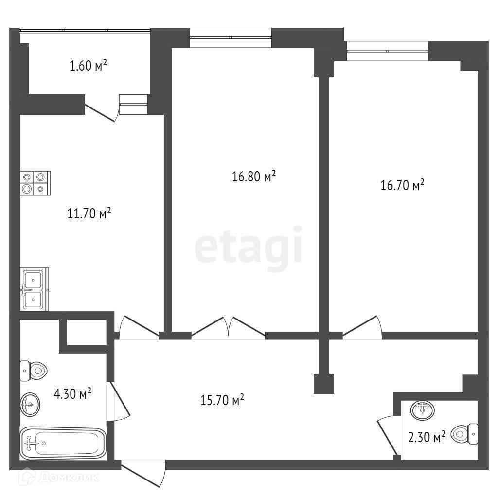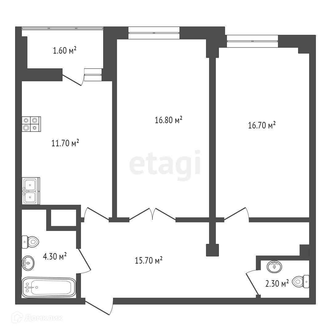 Общая площадь 74.3 м2