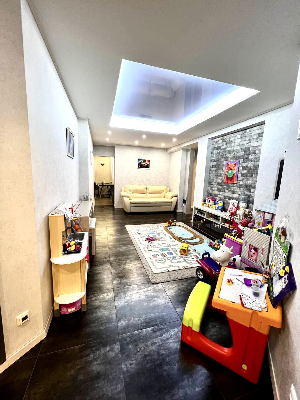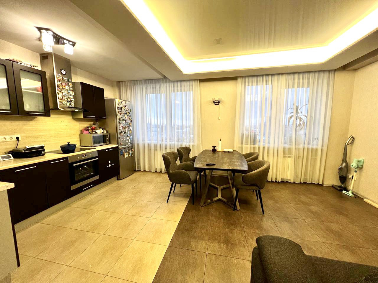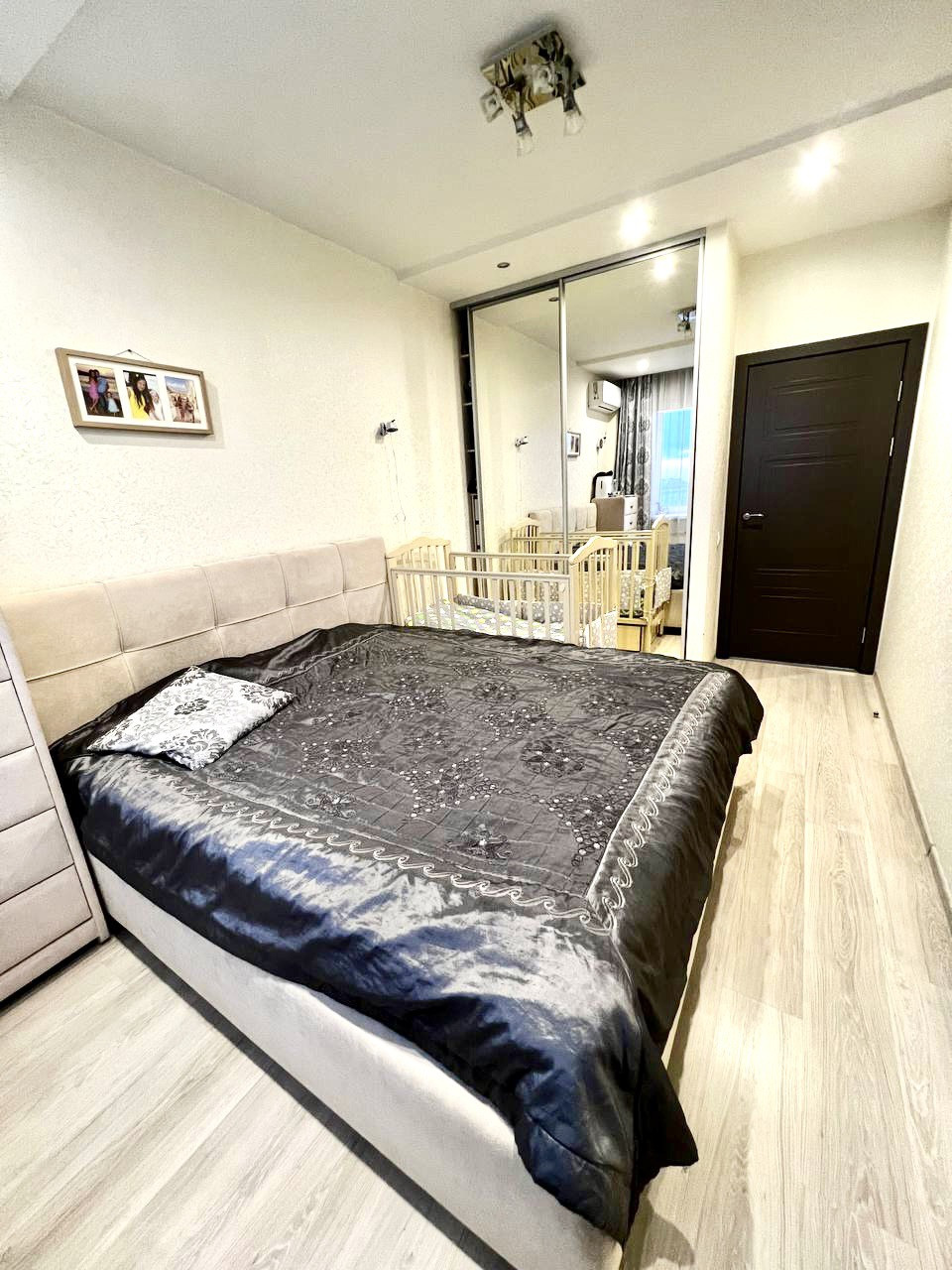 Квартира имеет два больших сан/узла (ванна+душевая кабина) , две изолированные спальни и проходной зал. Кухня 24 м2.