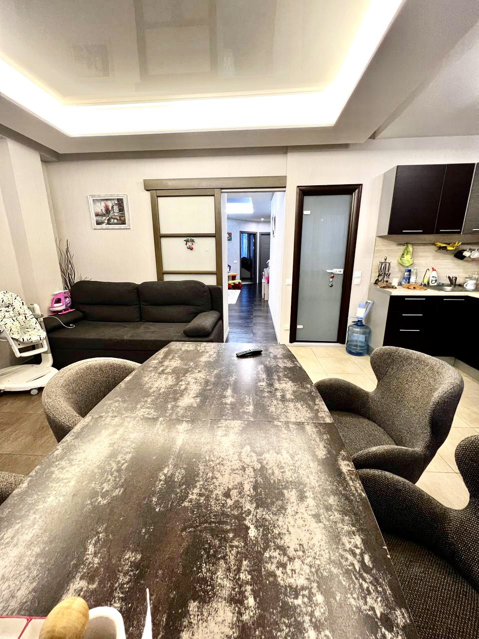 Теплые полы везде, где плитка, а именно: в обоих сан/узлах, на кухне, гостинной, прихожей и тамбуре.