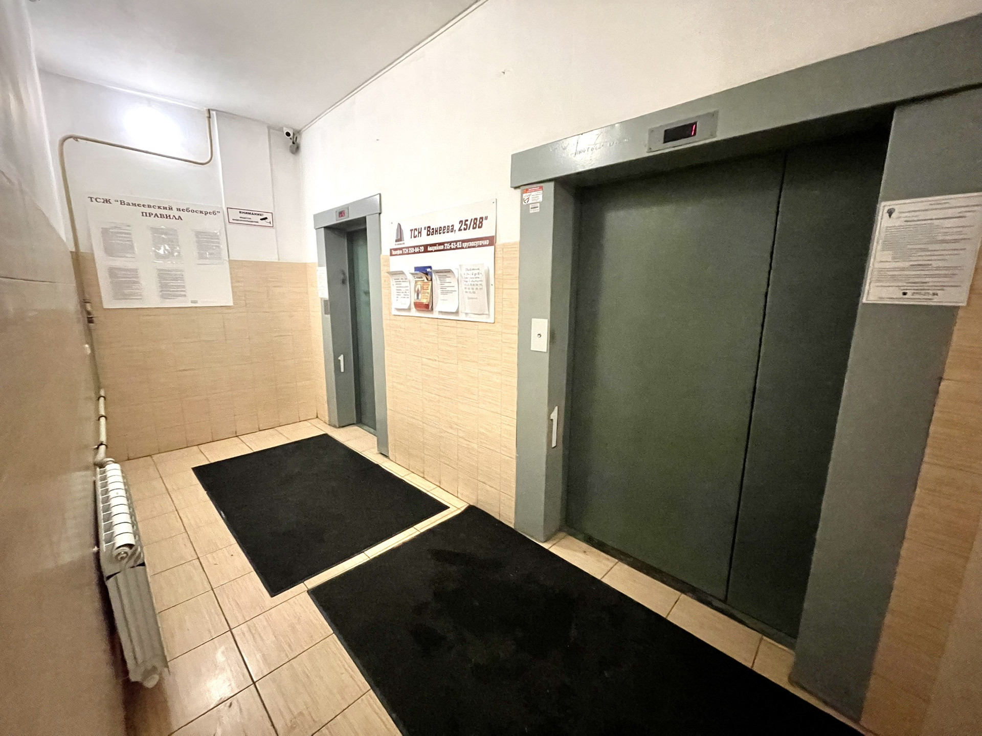 В квартире двухуровневые потолки. Два тамбура. Два лифта.