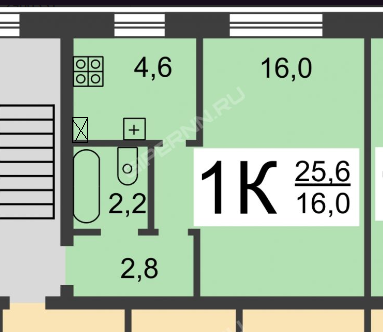 Общая площадь 25.7 м2