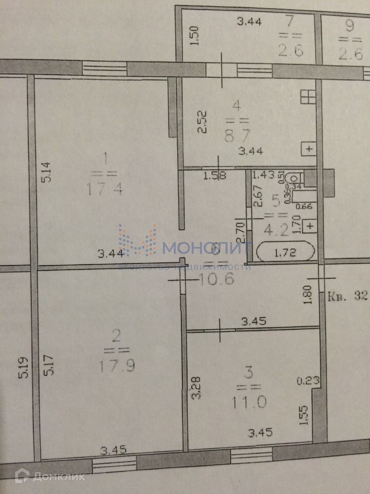 Общая площадь 72.4 м2