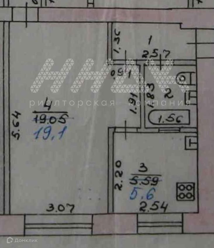 Площадь квартиры 32,6 кв.м, большая комната 19 кв.м, су совмещен, есть кладовка для хранения вещей.