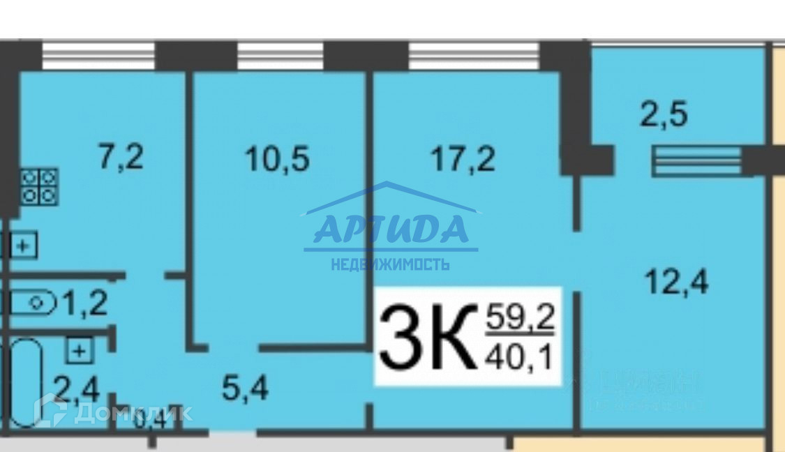 Общая площадь 59 м2