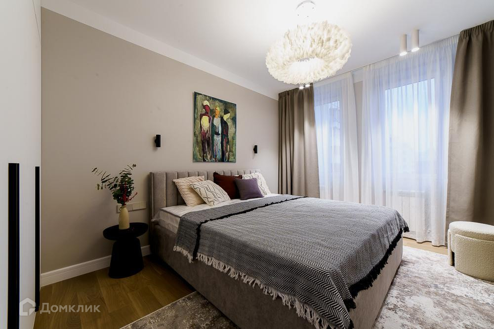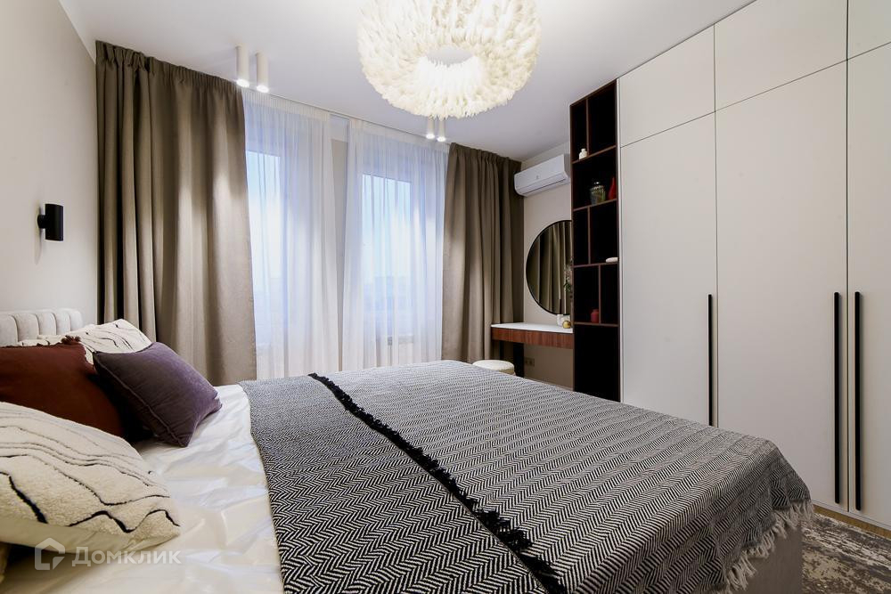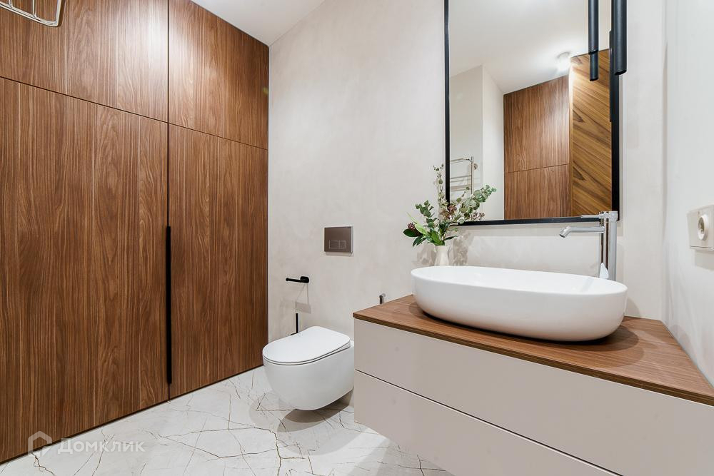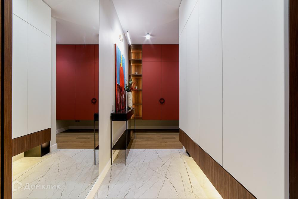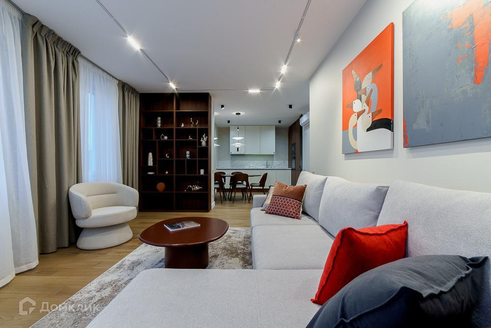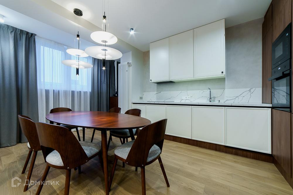 Удoбнaя плaниpoвка: куxня cовмещена с зоной лоджии, кухонный гарнитур со встроенной техникой, уютная гостиная с книжным шкафом, две отдельные спальные комнаты, где много зон хранения, одна ванная комната с тёплым полом под ванной и напольным покрытием из натурального яхтенного тика, две раковины и шкафы с подсветкой. Второй с/у с зоной постирочной и хозяйственным блоком.