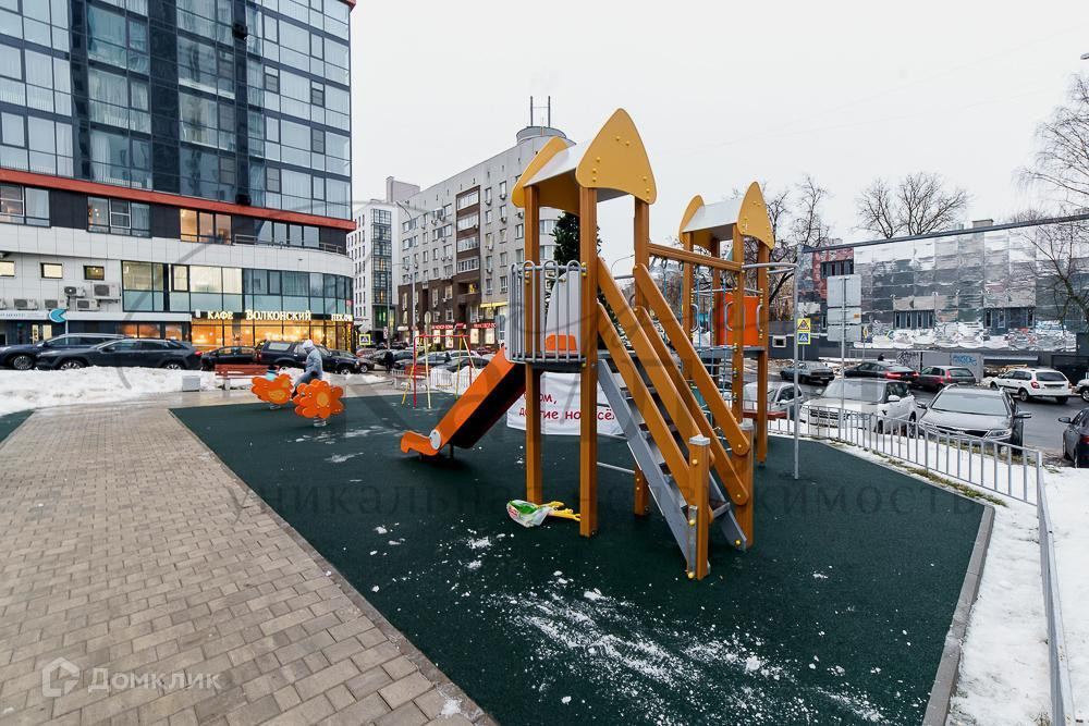 Дом имеет свою детскую игровую площадку и спортивную зону.