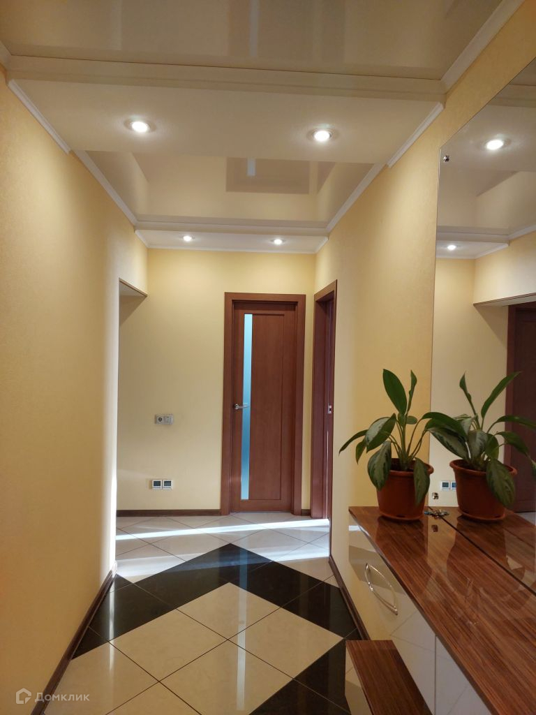 В зоне между спальнями расположена вместительная гардеробная. Большую прихожую украшает большое зеркало.