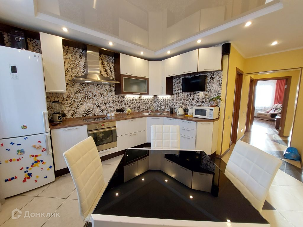 Светлый встроенный кухонный гарнитур "Мария", импортная бытовая техника, посудомоечная машина - все продумано для удобства и комфорта хозяйки и семьи. Сан.узел раздельный, выполнен в светлых приятных тонах. В ванной комнате капитальная душевая кабина из мозайки, есть удобный шкаф для хранения моющих средств. В туалете установлен бойлер и техническая раковина.